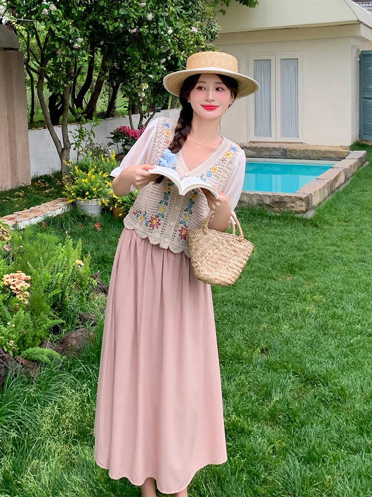 法式复古高级感时尚套装女夏季新款镂空蕾丝小衫半身裙两件套