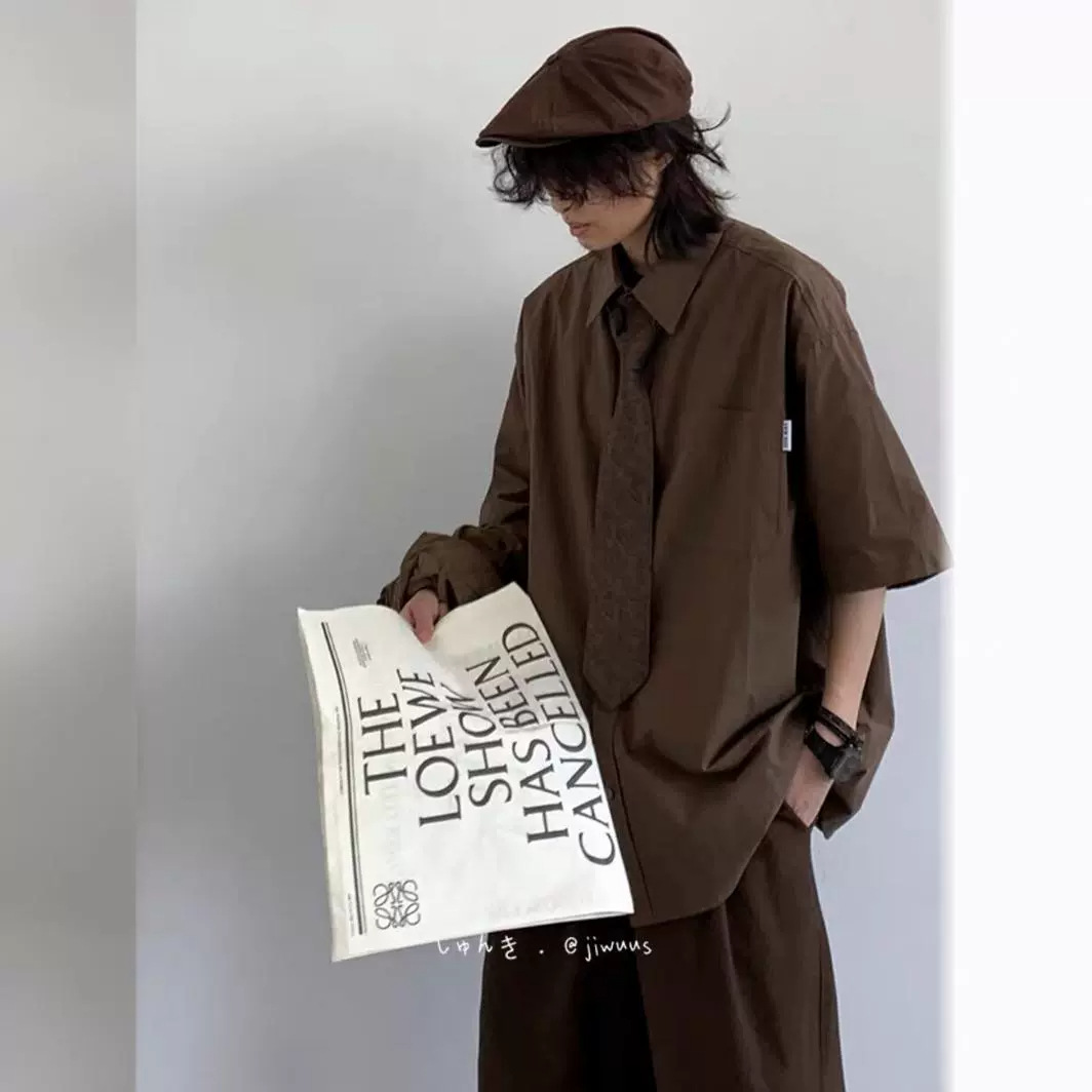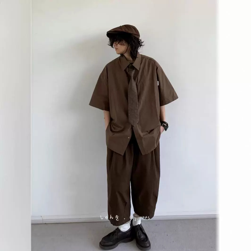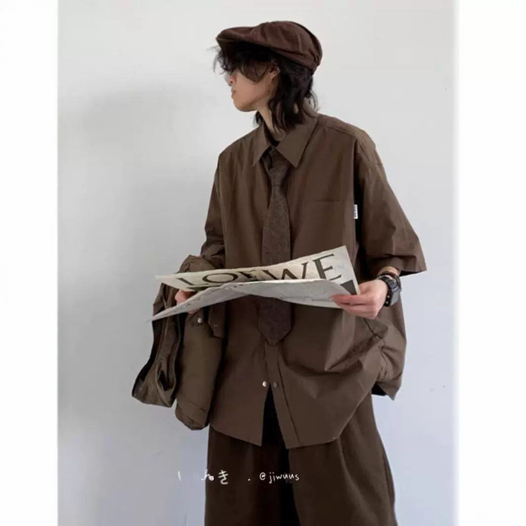 青少年日系复古短袖工装衬衫男夏季休闲宽松半袖衬衣外套潮T恤