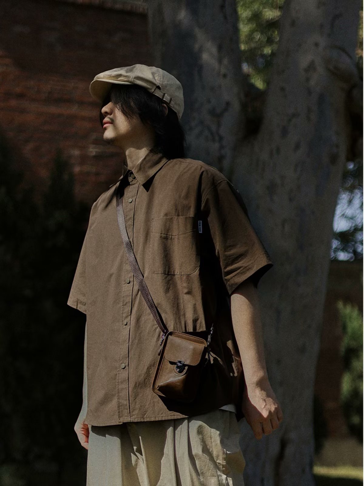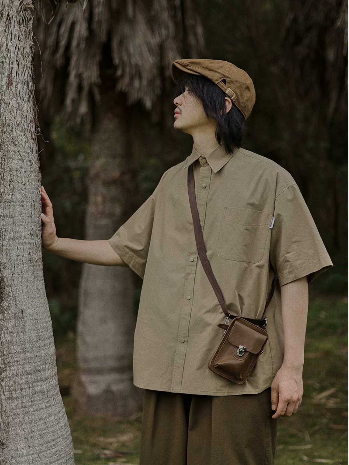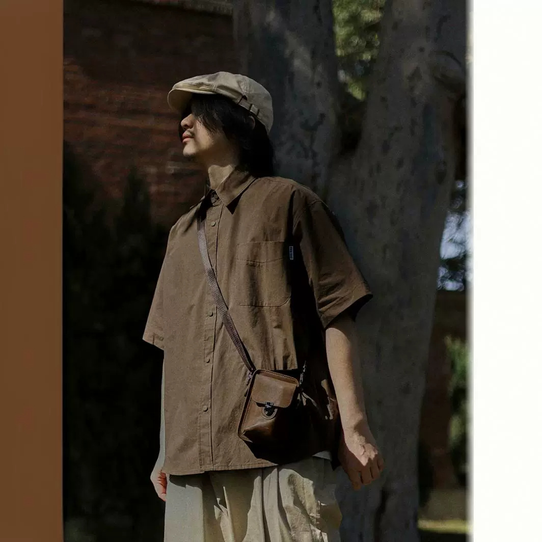 青少年日系复古短袖工装衬衫男夏季休闲宽松半袖衬衣外套潮T恤