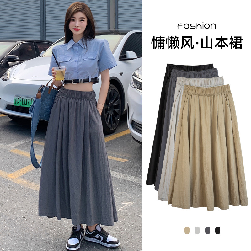 萝卜大叔半身裙女春夏薄款慵懒风日系复古褶皱大摆伞裙长款山本裙