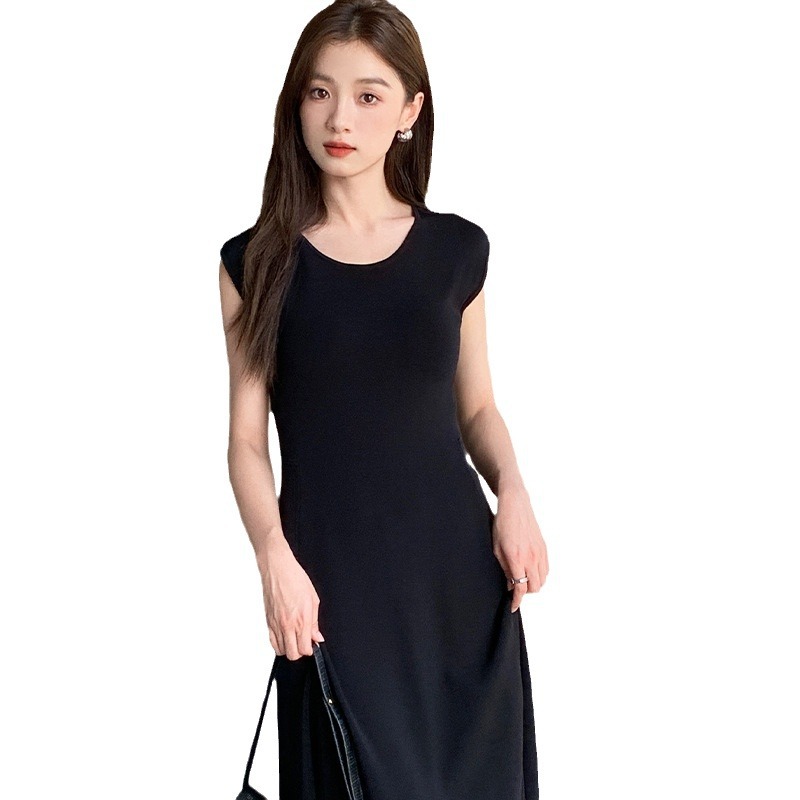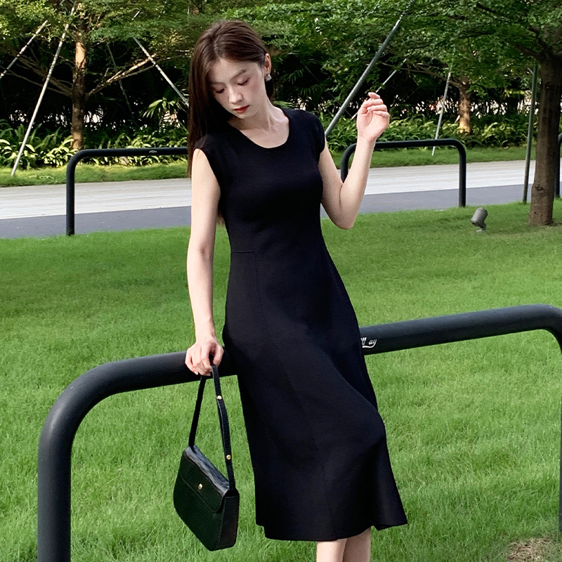 显白质感气质法式黑色长裙夏季新款收腰显瘦气质中长款针织裙