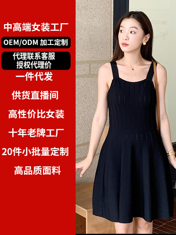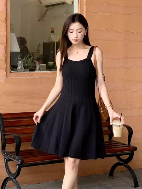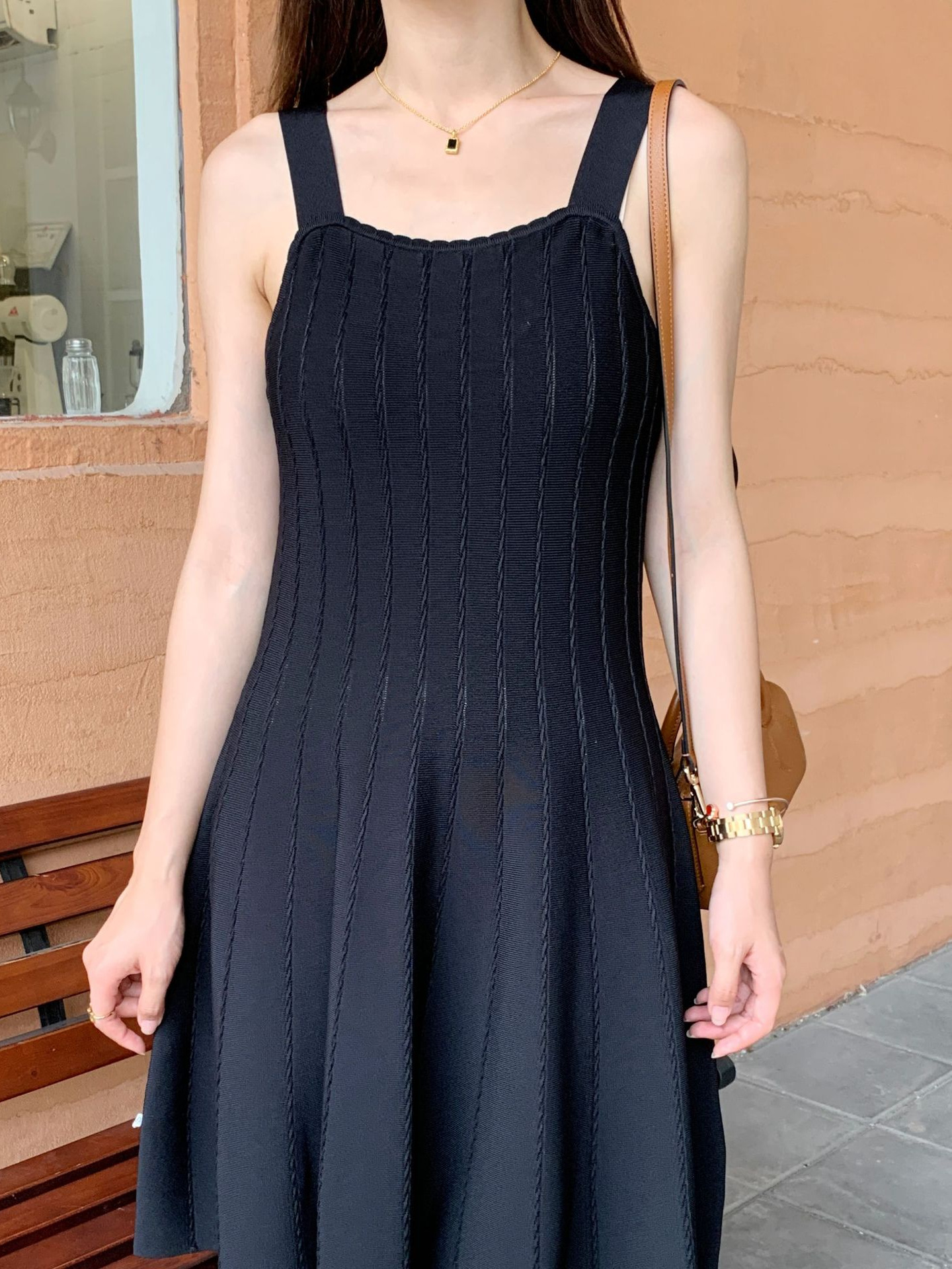 高品质冰丝法式肌理针织吊带收腰显瘦连衣裙大摆裙女夏性感