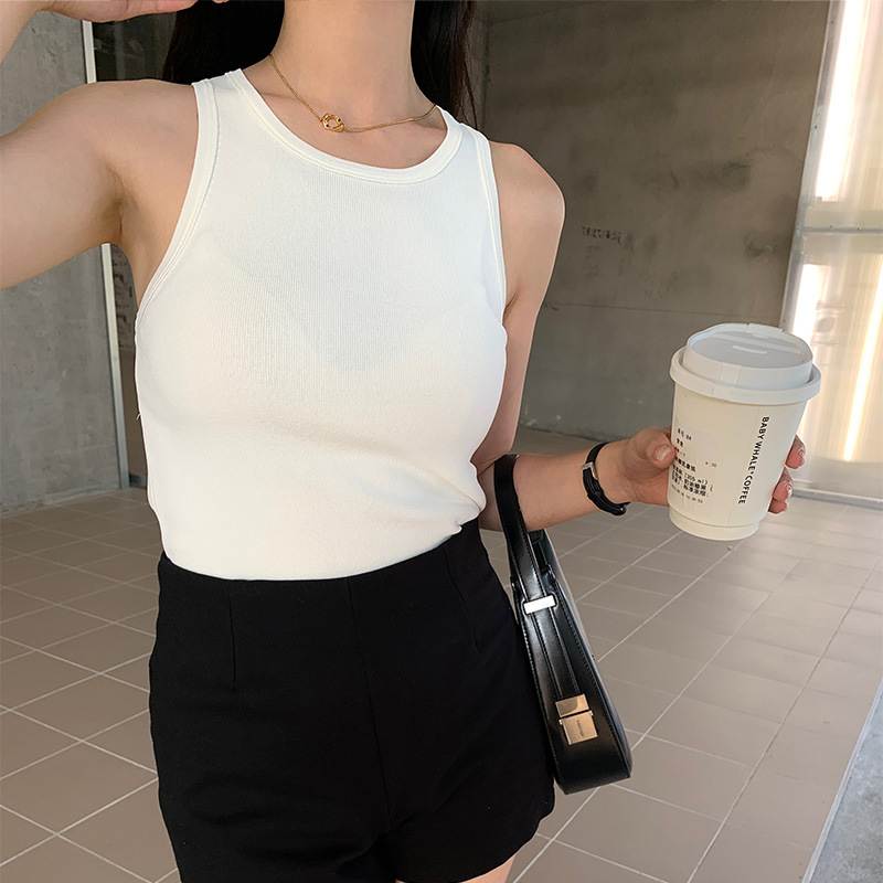 高品质冰丝夏季圆领工字无袖背心套头修身显瘦针织女装
