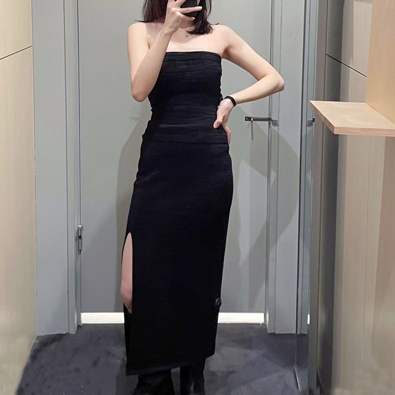 alCOS风新品性感针织抹胸套装裙气质开叉直筒连衣长裙