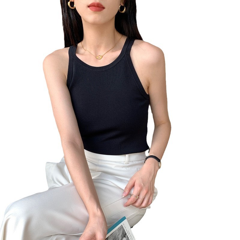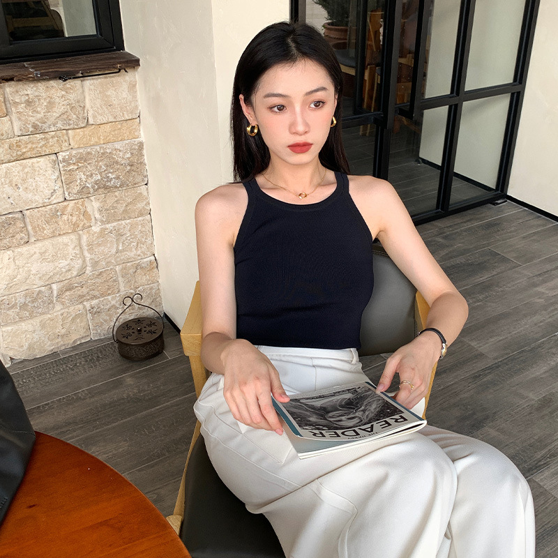 冰凉感高品质休闲挂脖无袖套头夏季新女装针织背心修身