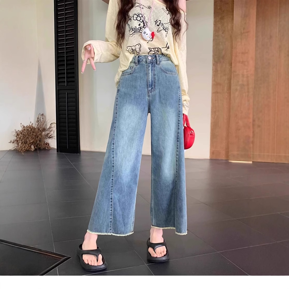 大码九分牛仔裤女夏季2025新款薄款胖mm宽松高腰显瘦直筒阔腿裤子