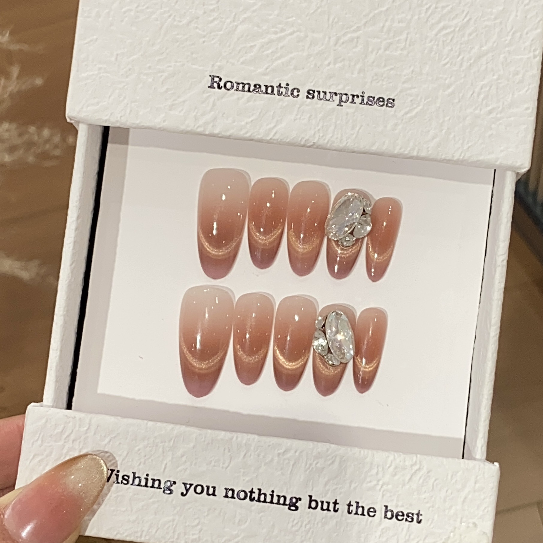 一只顾美甲 秋冬日常简约冰透晕染微笑猫眼堆堆椭圆钻苏黎世指甲