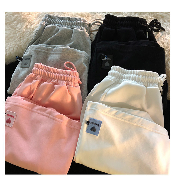 粉色爱心贴标运动短裤2025新款男女夏季薄款宽松学生休闲五分裤潮