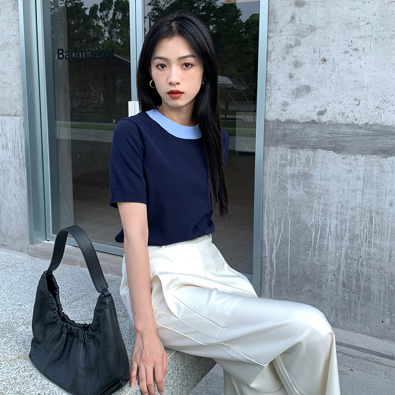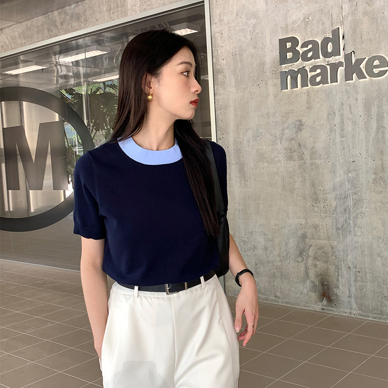 高品棉质宽松套头上衣夏季女装针织短袖简约休闲T恤