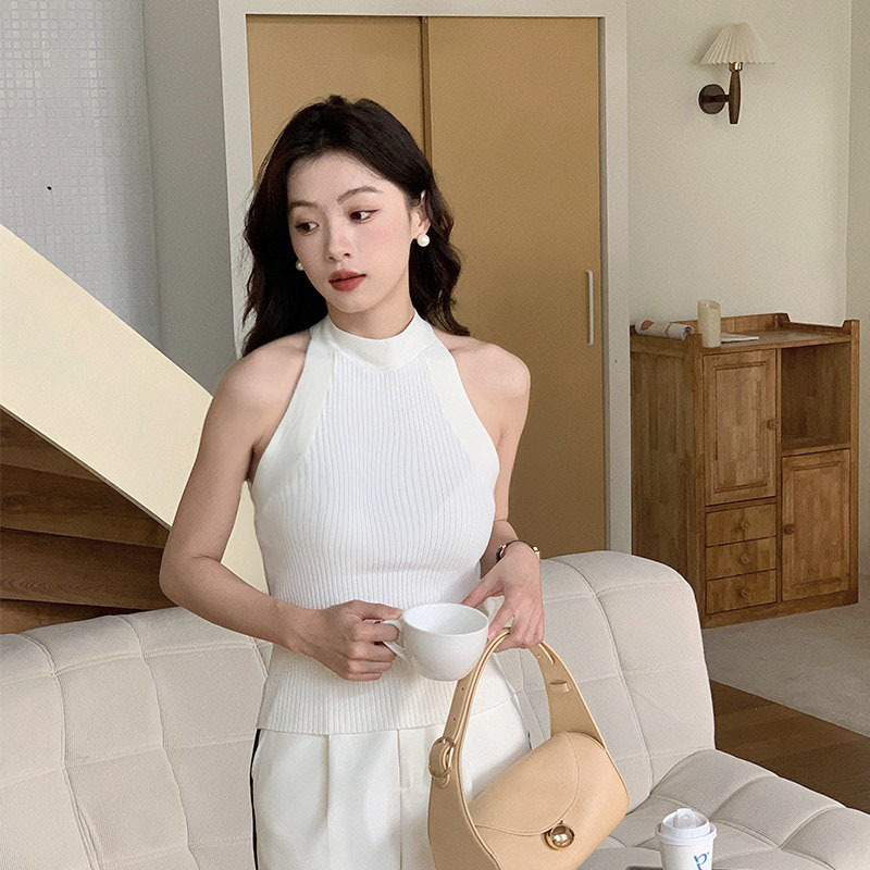 平替交叉背冰凉质感新款修身性感针织背心无袖套头上衣