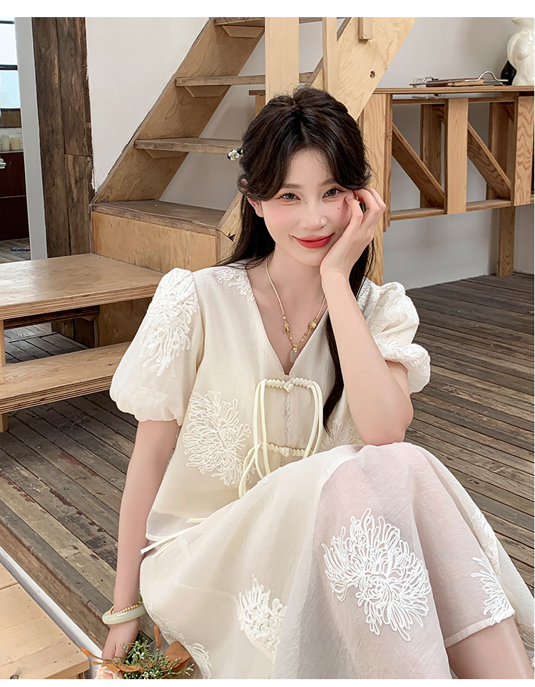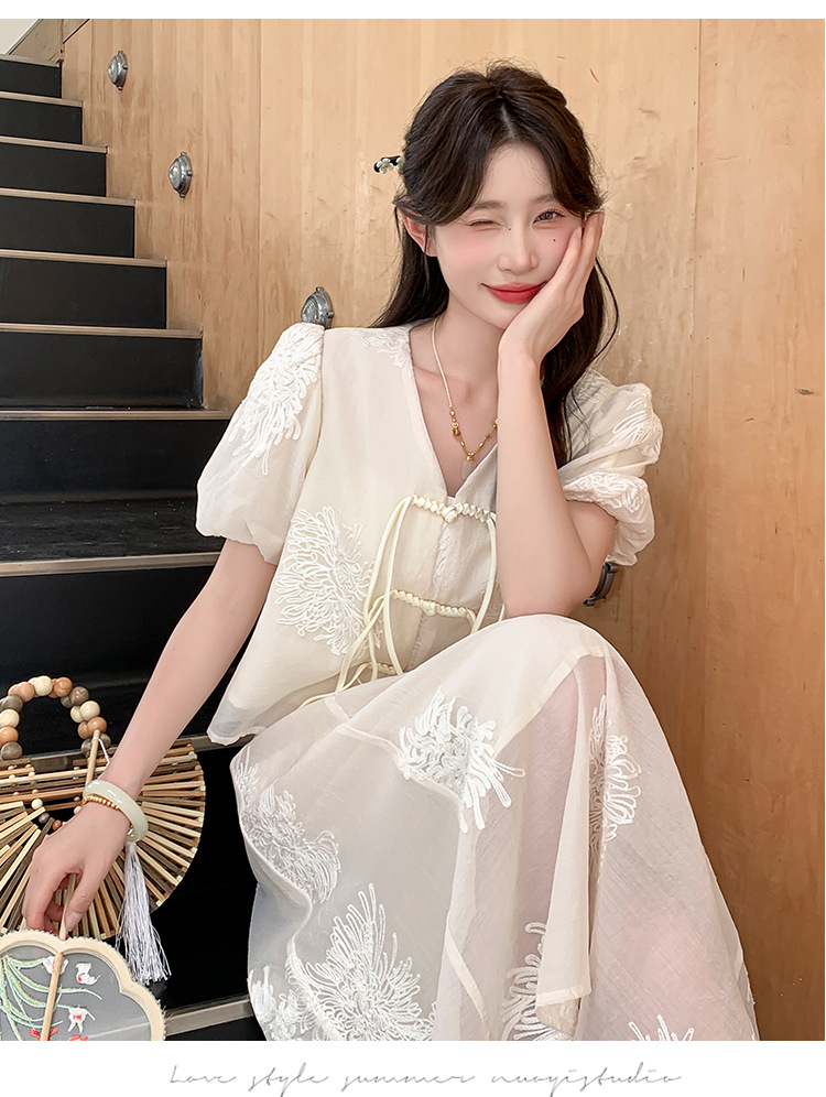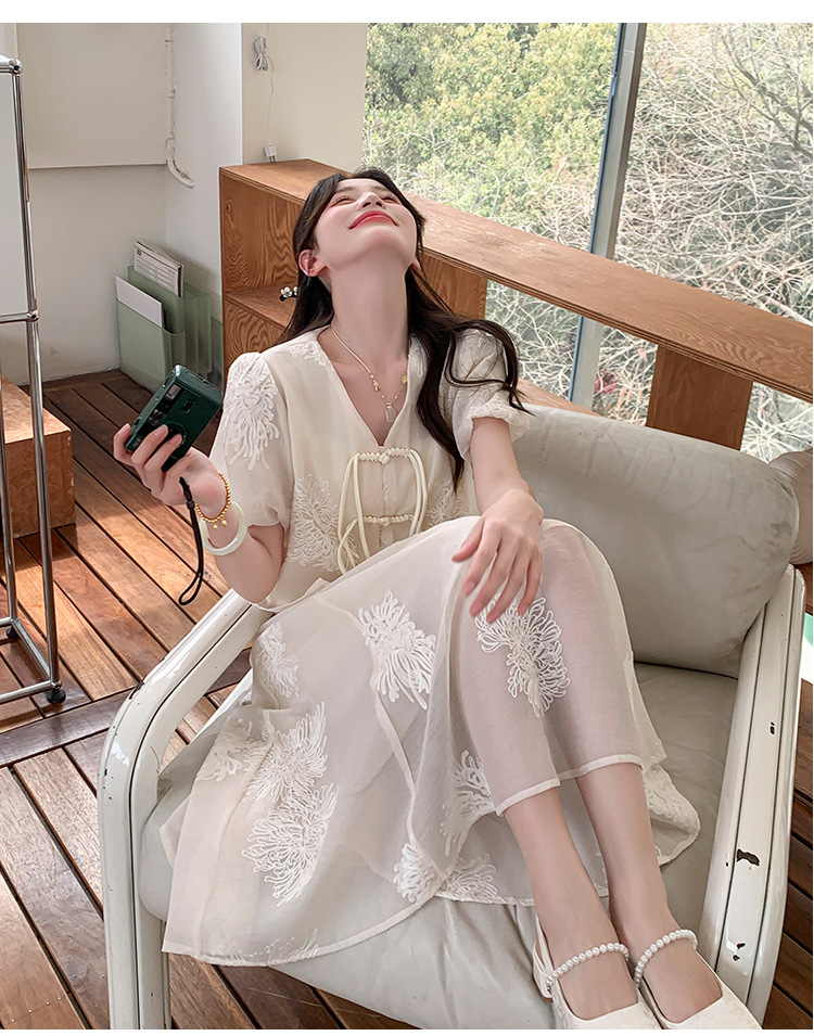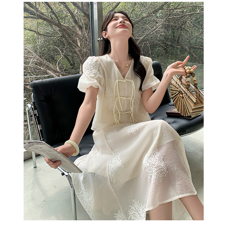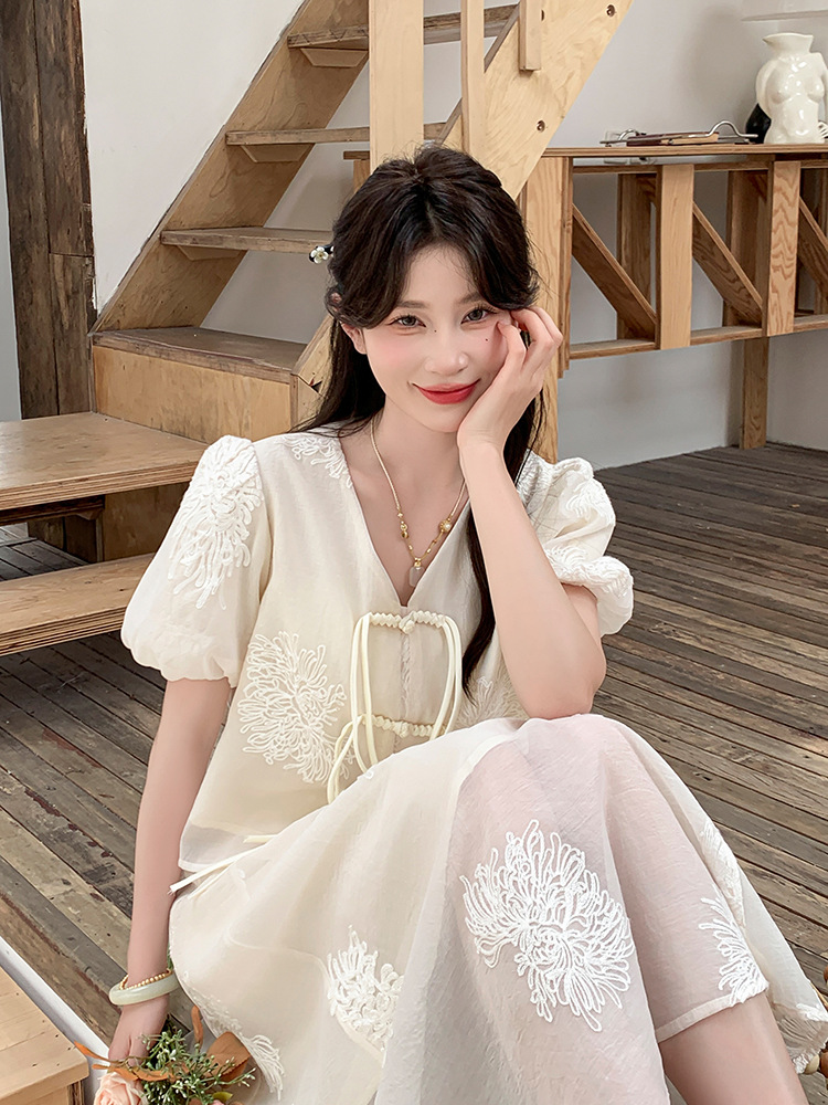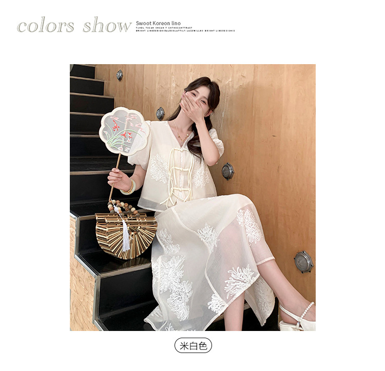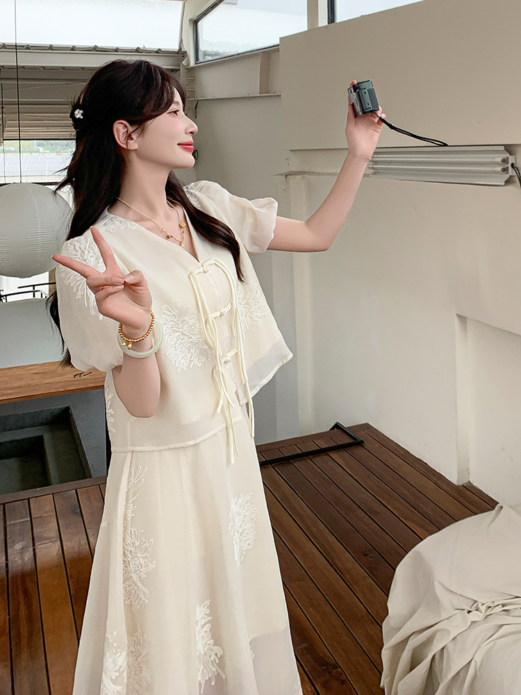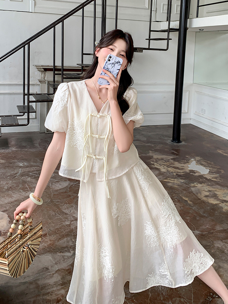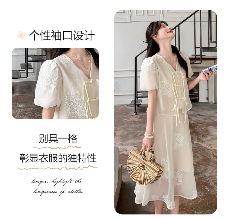 新中式两件套连衣裙夏季新款高级感刺绣国风盘扣小衫半身裙套装女