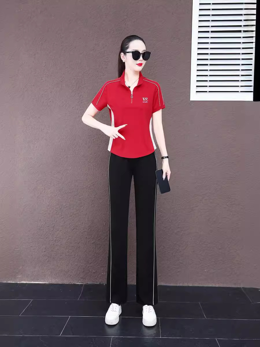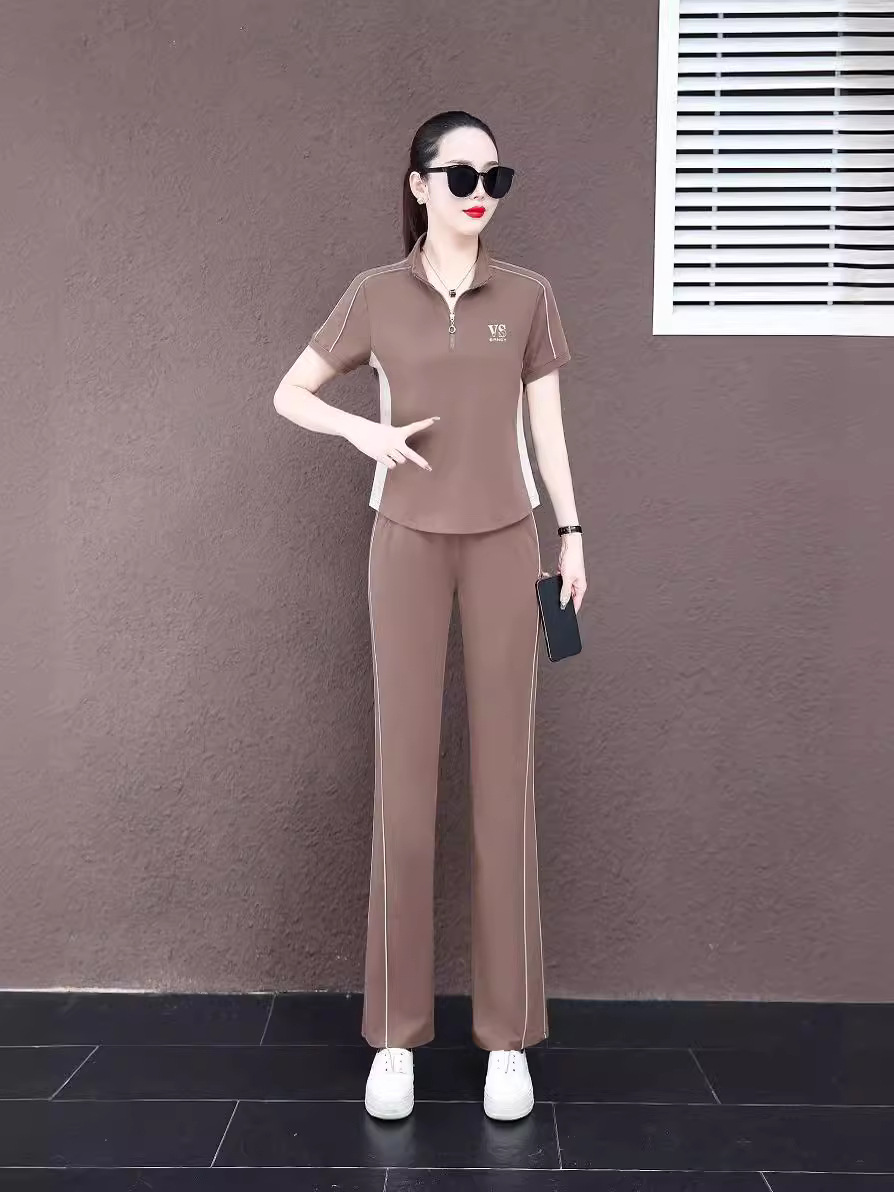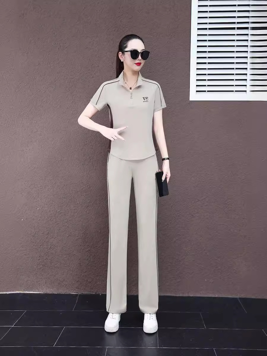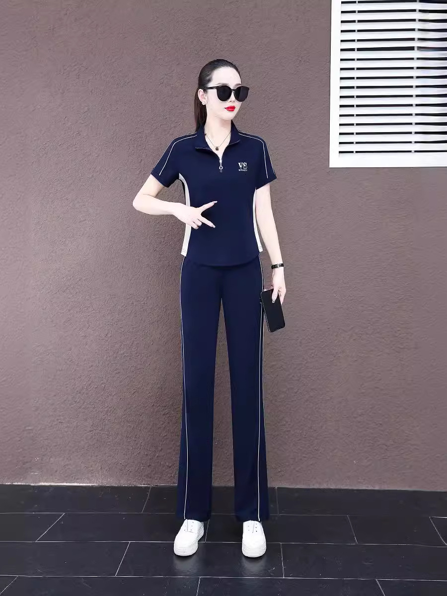 正品杰菲雪怡运动套装夏装新款时尚洋气立领冰丝运动服两件套