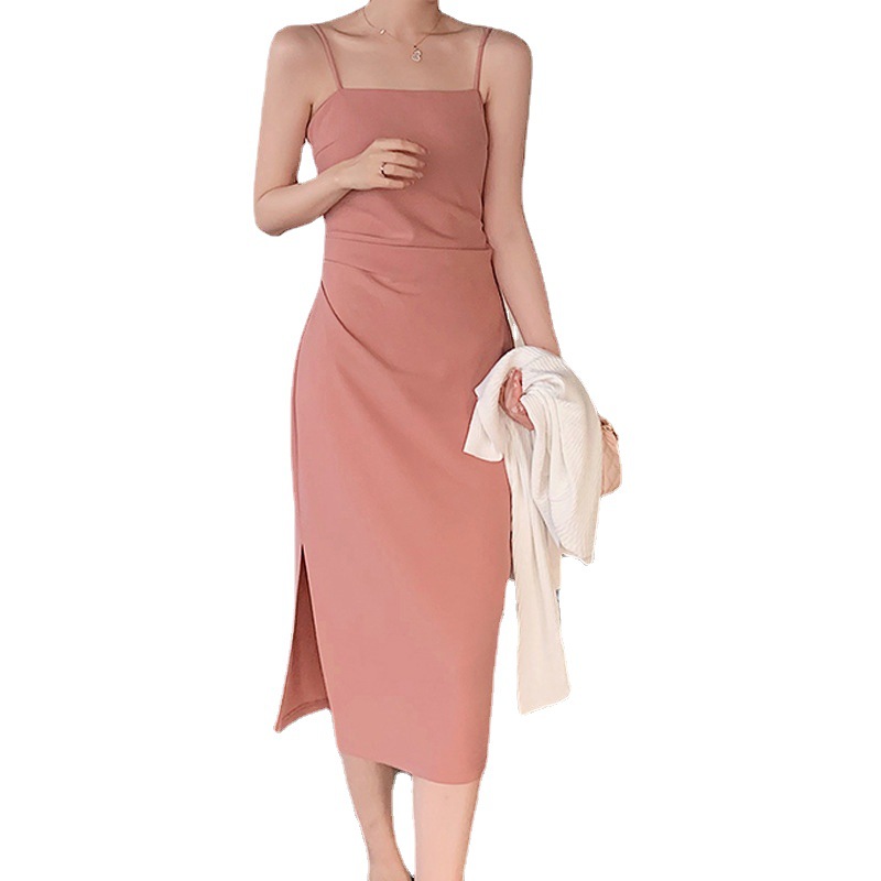 法式吊带裙女夏质感设计感小众气质修身中长款连衣裙