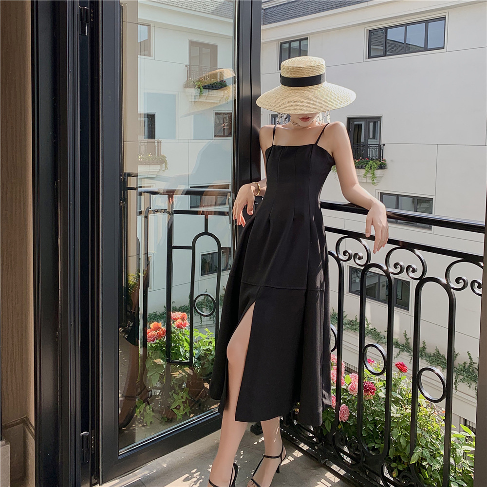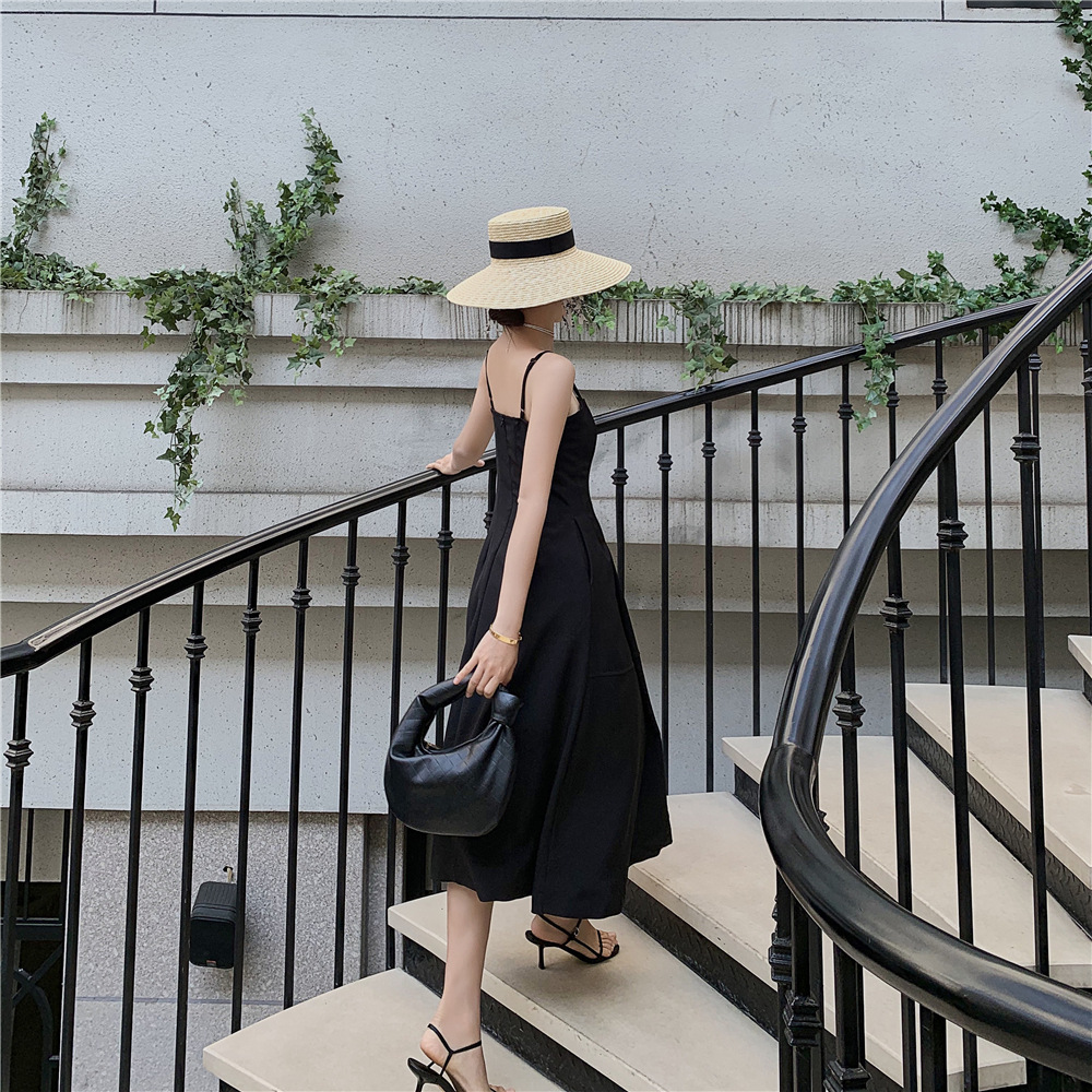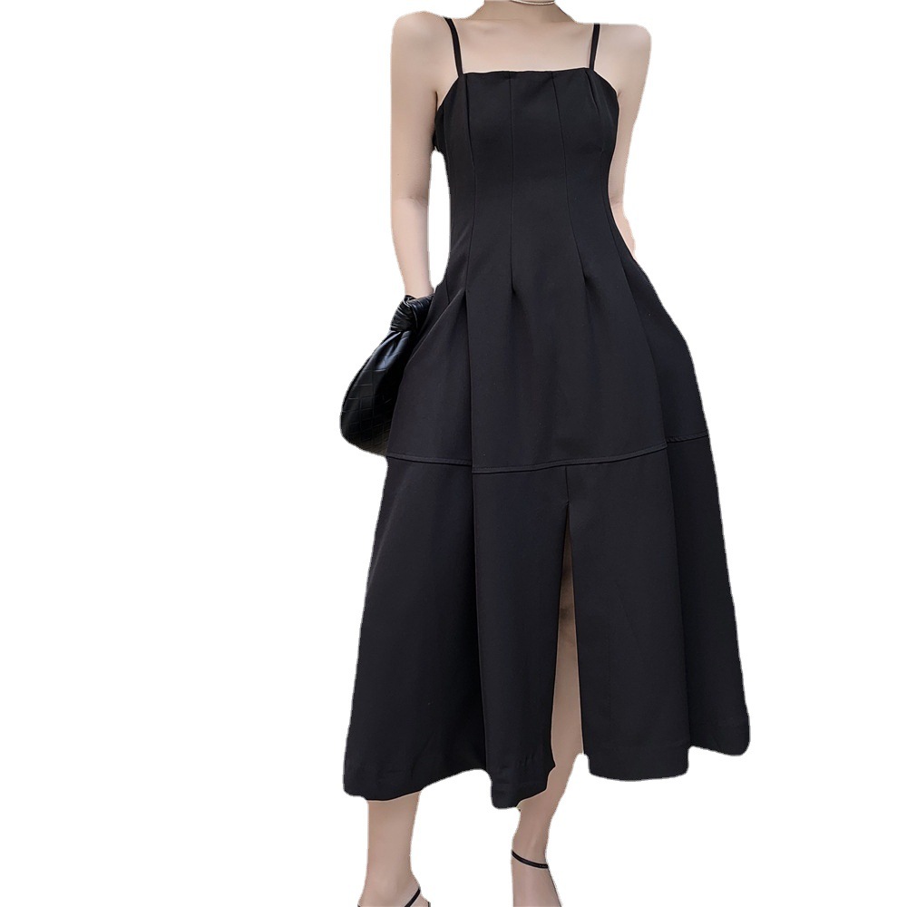 夏新款法式赫本风小黑裙设计感小众黑色吊带连衣裙女海边度假