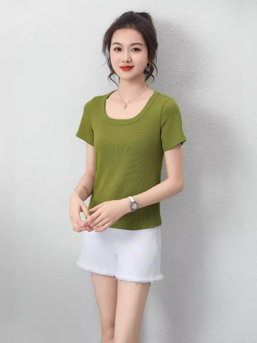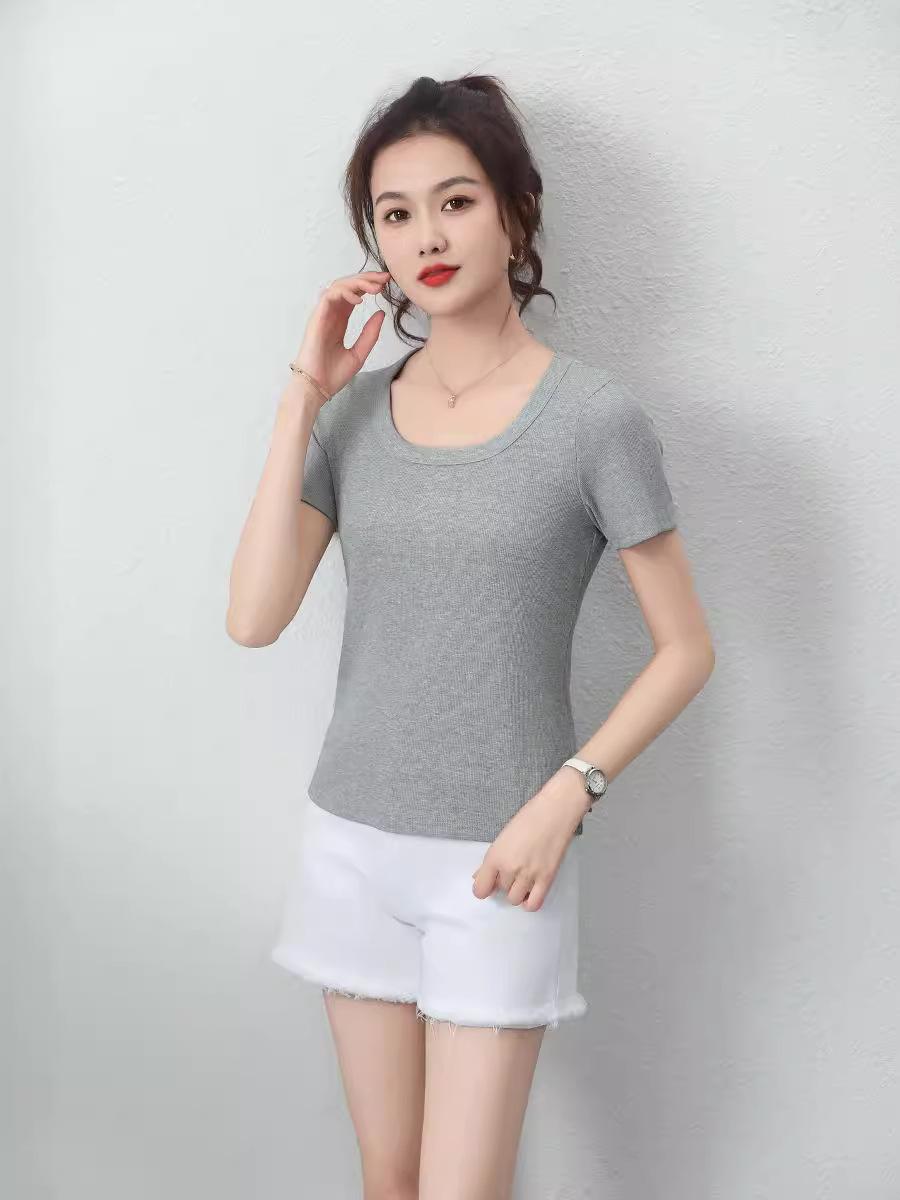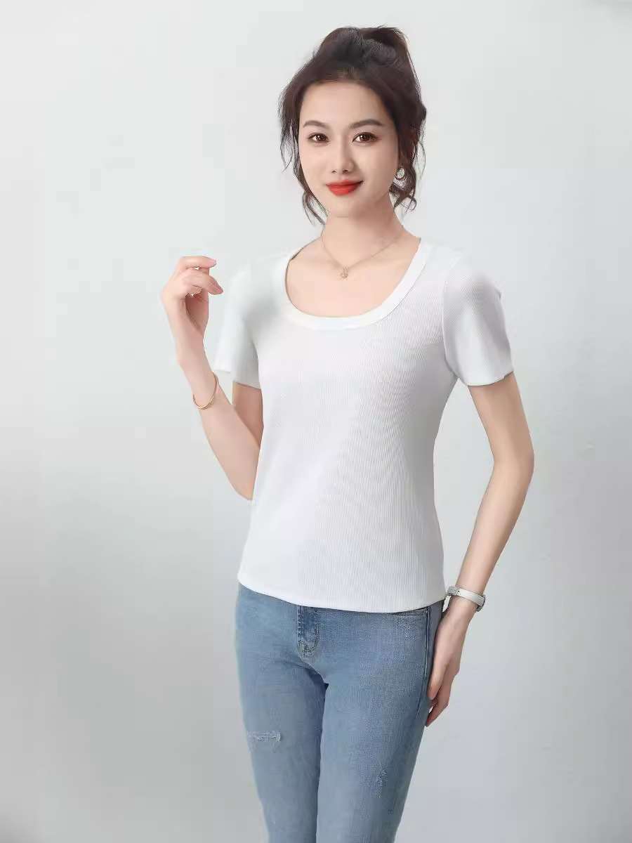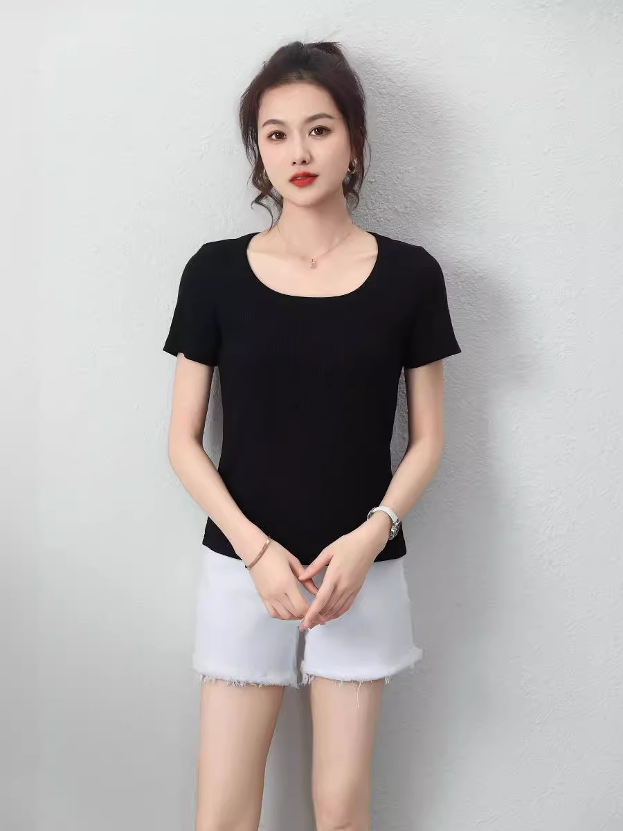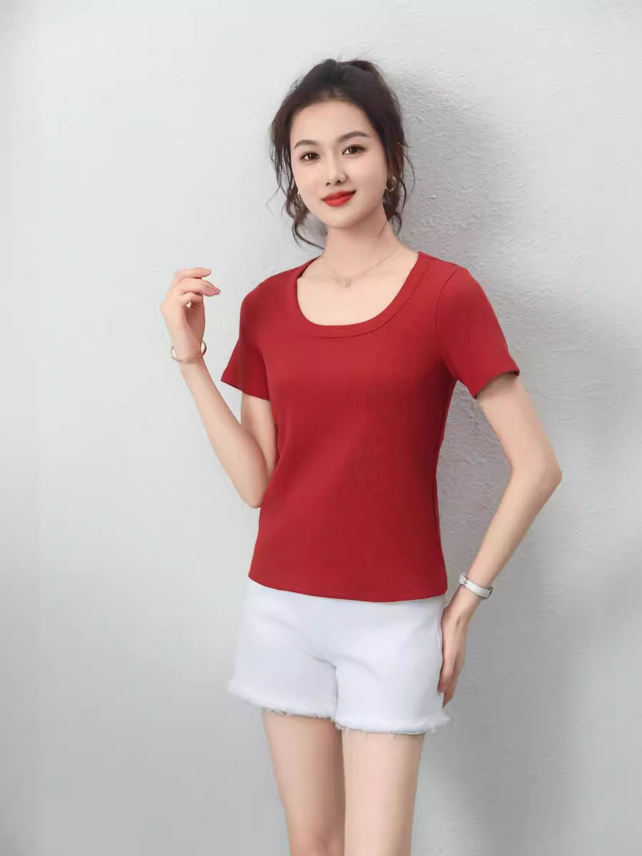 美式轻薄U字领短袖T恤女夏季新款时尚修身显瘦运动速干上衣