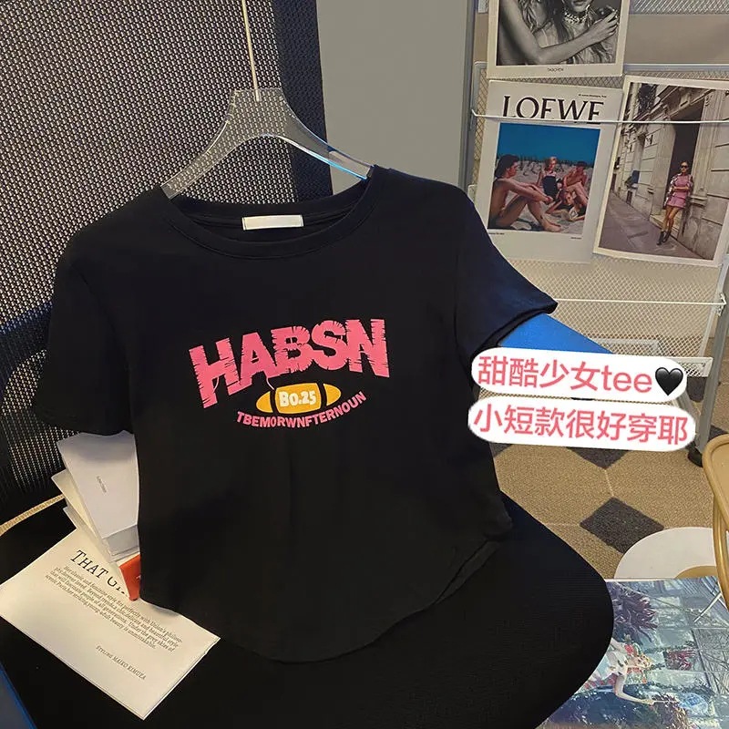 纯棉时尚气质圆领印花短袖T恤女夏新款洋气休闲百搭减龄上衣