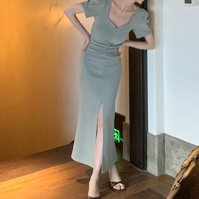 新款夏季轻熟短袖连衣裙气质长裙修身夜店显瘦开叉性感夜场女装