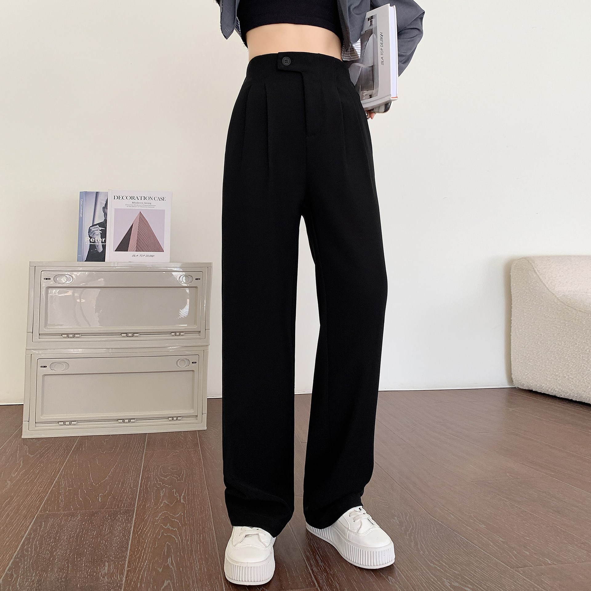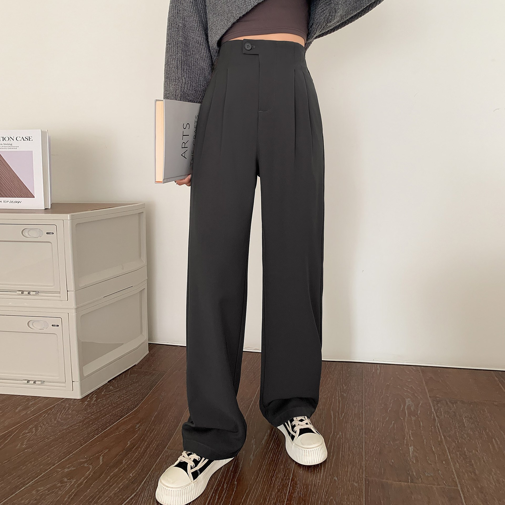西装裤女春秋新款高腰垂感阔腿裤宽松显瘦窄版通勤长裤女装