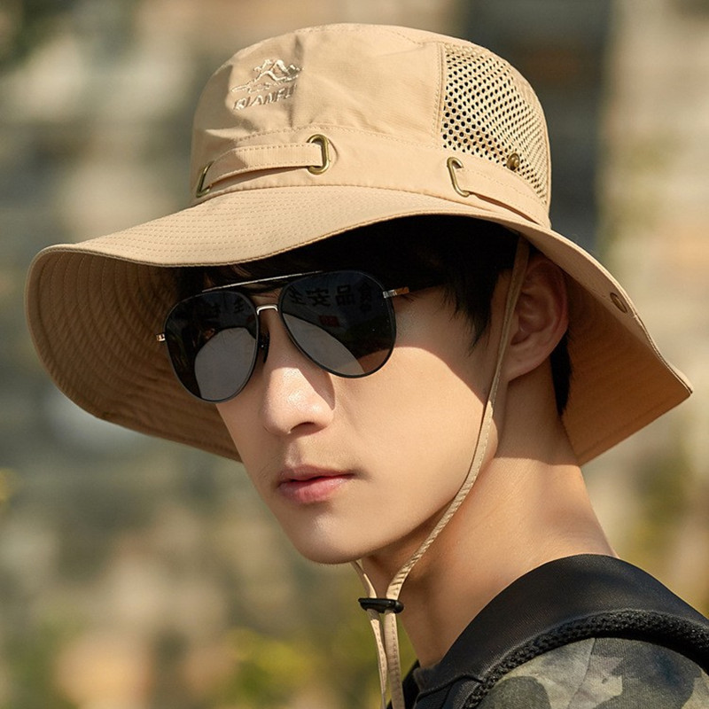 大檐帽子男士夏季户外出游防晒太阳帽透气大边钓鱼网帽渔夫帽凉帽