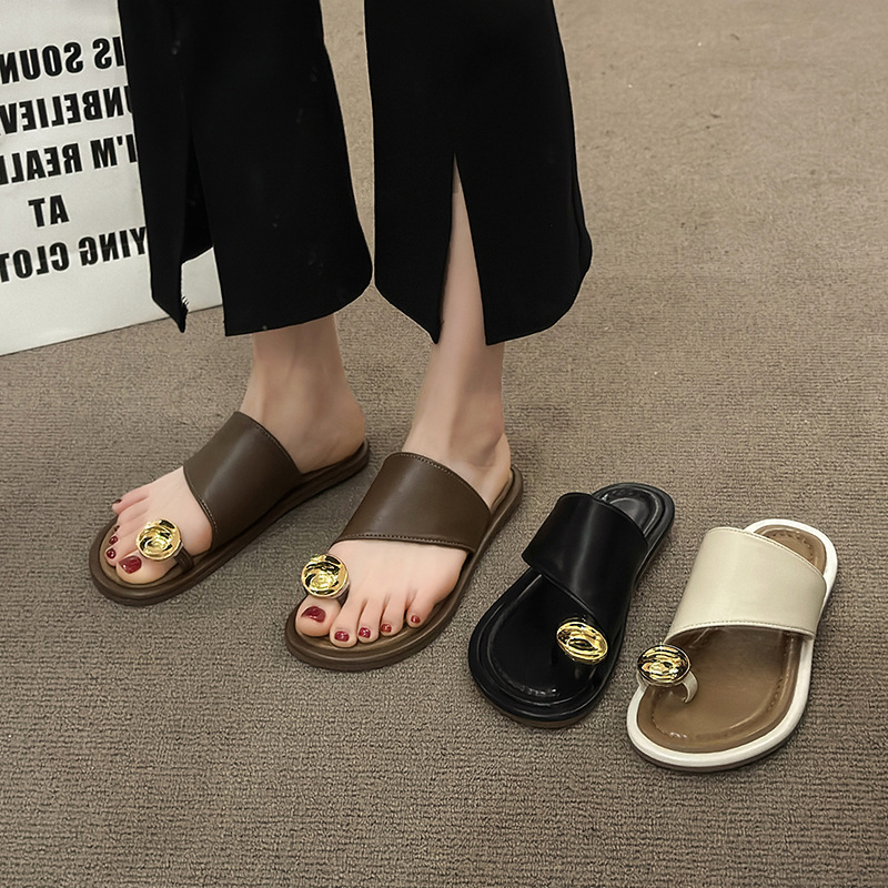 法式套趾一脚蹬外穿凉拖鞋海边度假沙滩凉鞋休闲复古拖鞋