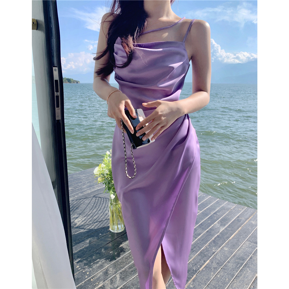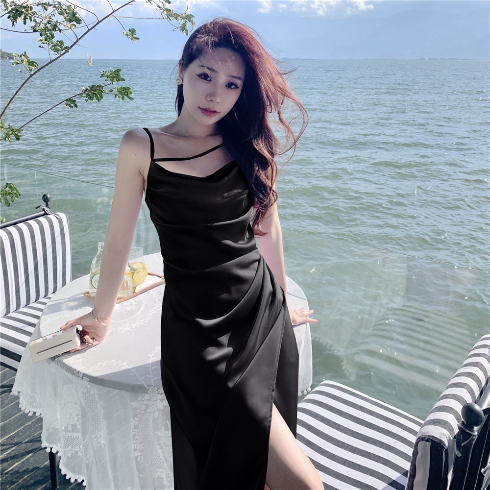法式醋酸缎面吊带连衣裙女夏季裙子名媛高腰高级感长款a字裙
