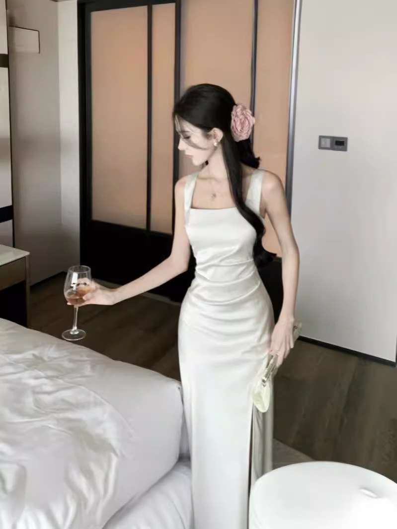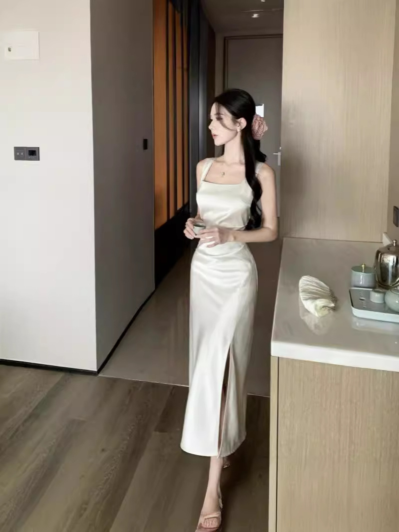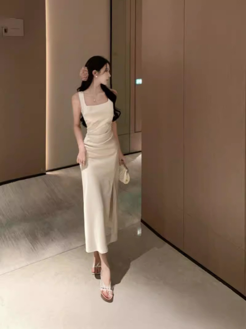 米白色高端气质连衣裙新款女夏修身显瘦吊带裙质感高级感