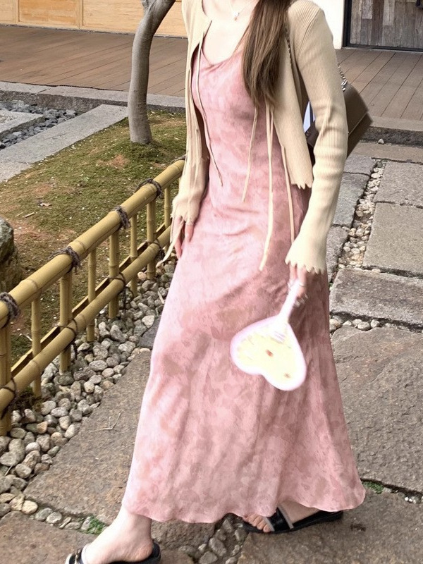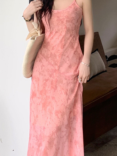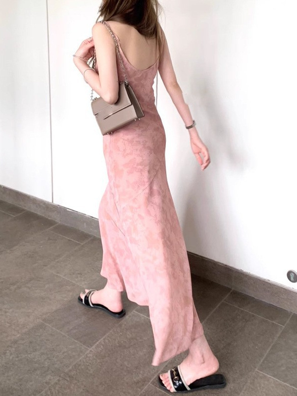 夏季新款 小鱼尾拼接吊带碎花连衣裙女春收腰显瘦长裙