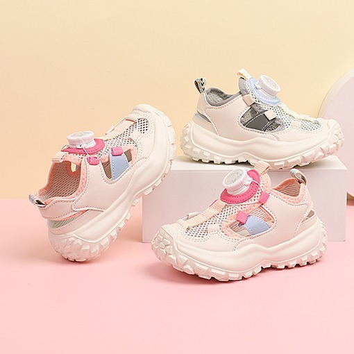 夏季单透网运动鞋旋转扣儿童鞋新款镂空男女童休闲凉鞋跑步鞋