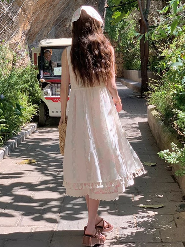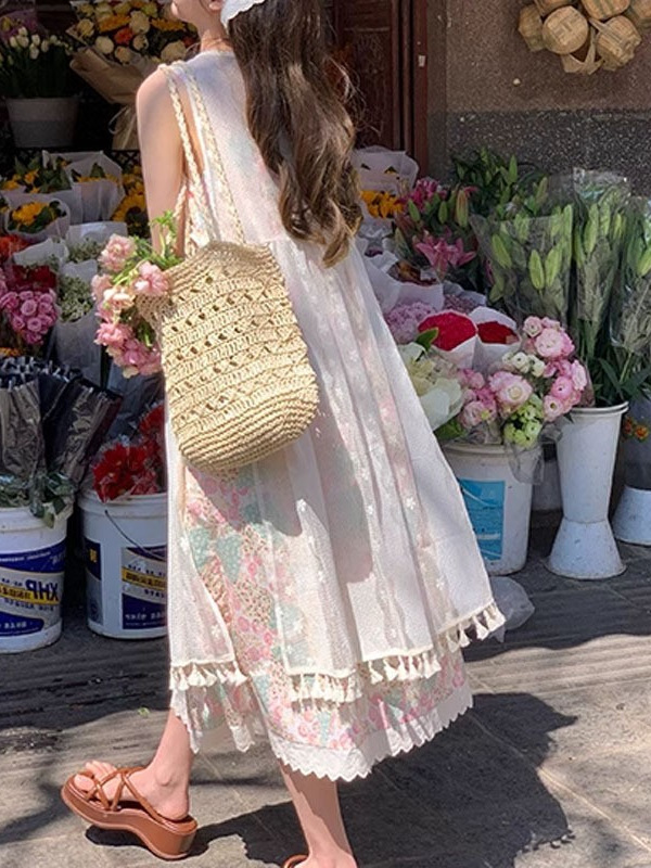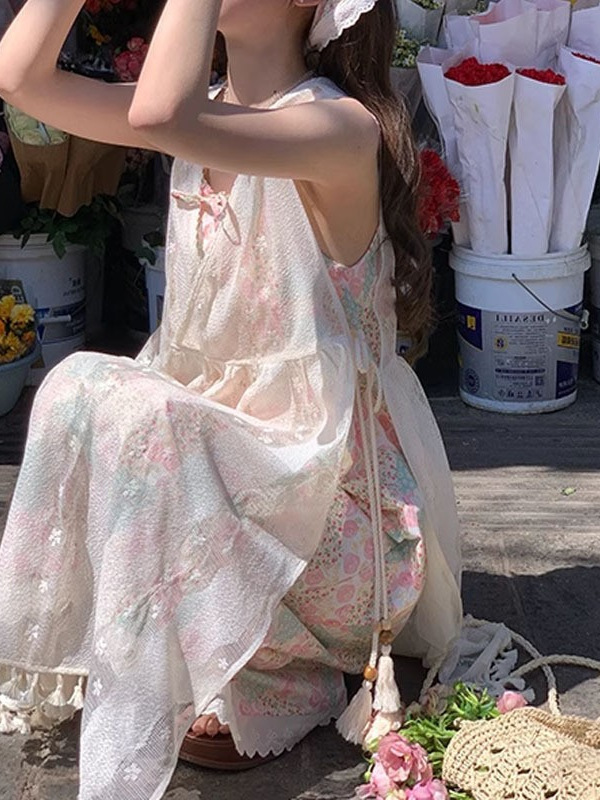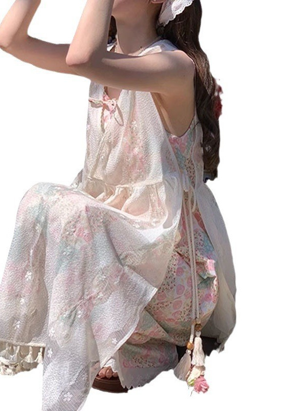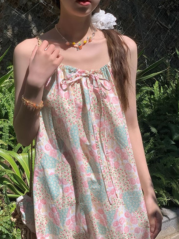 法式高级感裙子女夏季新款百家布碎花拼接度假风吊带连衣裙