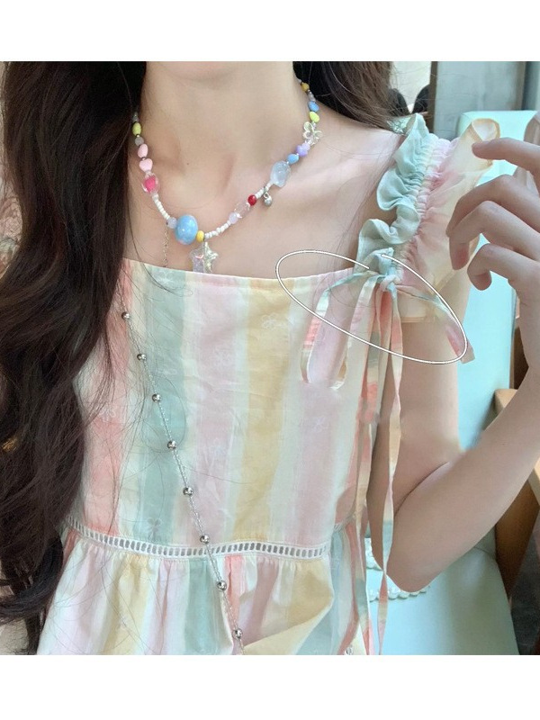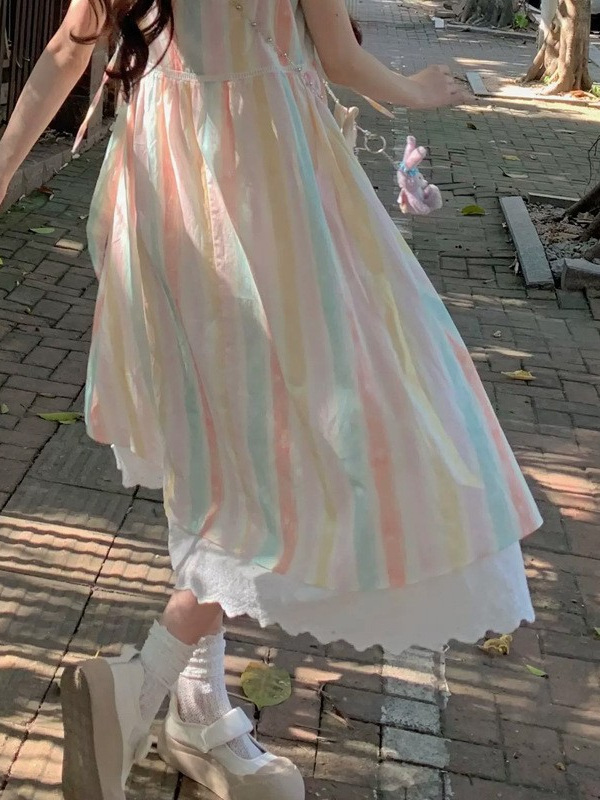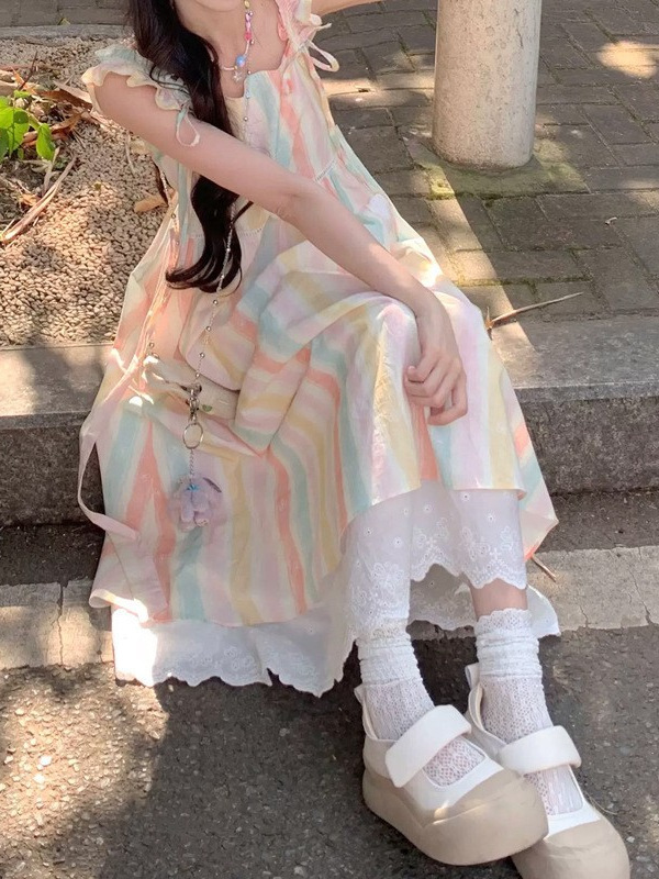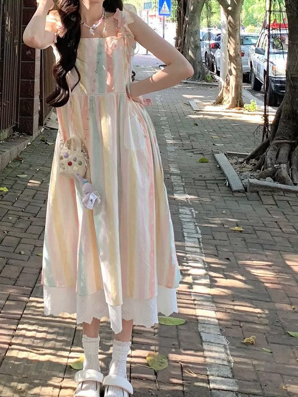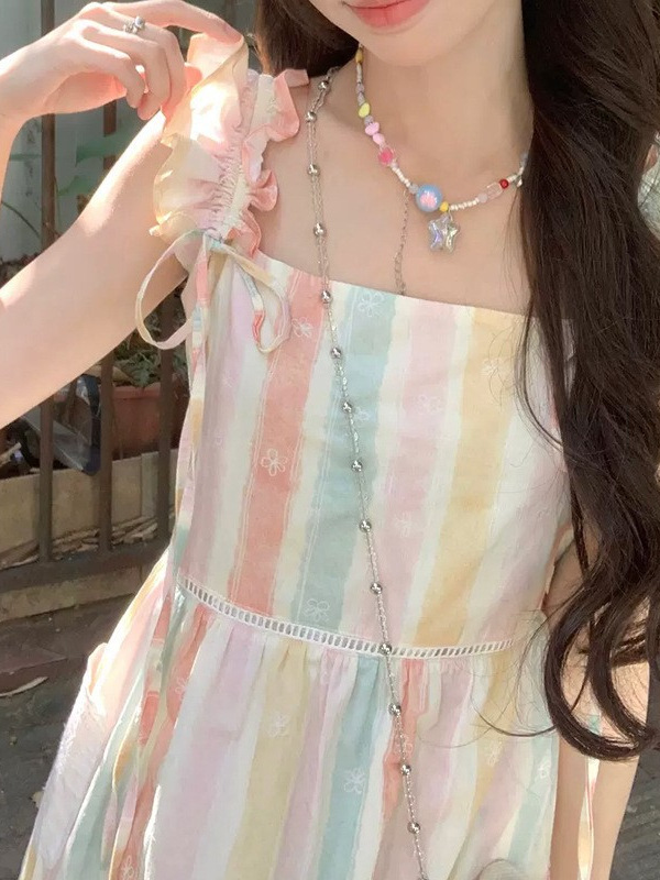 新款 法式连衣裙小众设计无袖吊带遮肚子显瘦女夏长裙飞飞袖