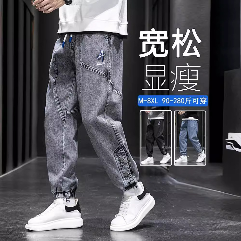 大码加肥加大男裤子春秋潮胖宽松休闲牛仔裤男士束脚工装裤