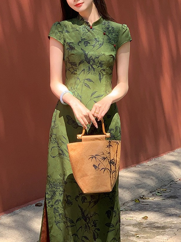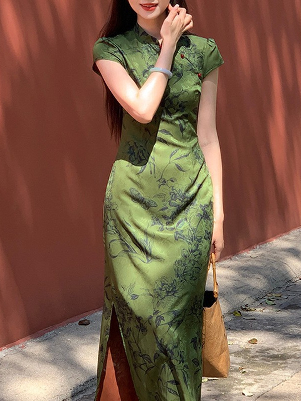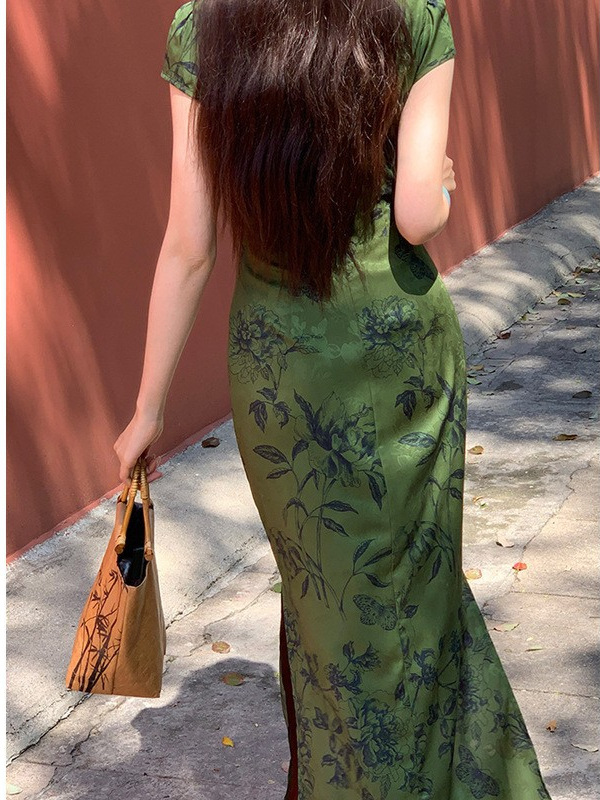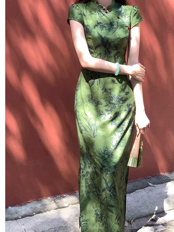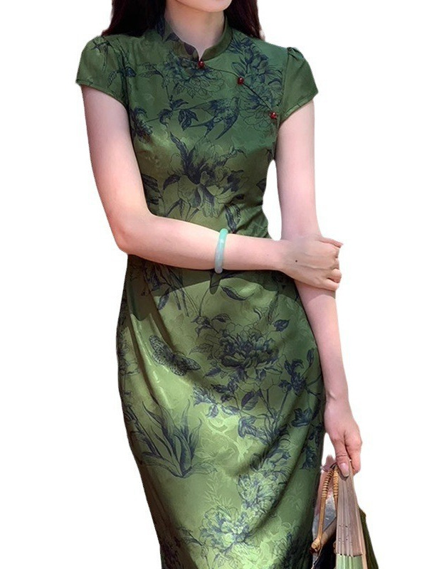 新中式提花改良旗袍女春气质复古短袖连衣裙长裙显瘦旗袍裙