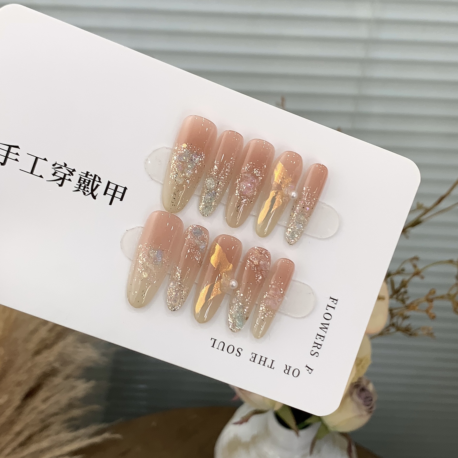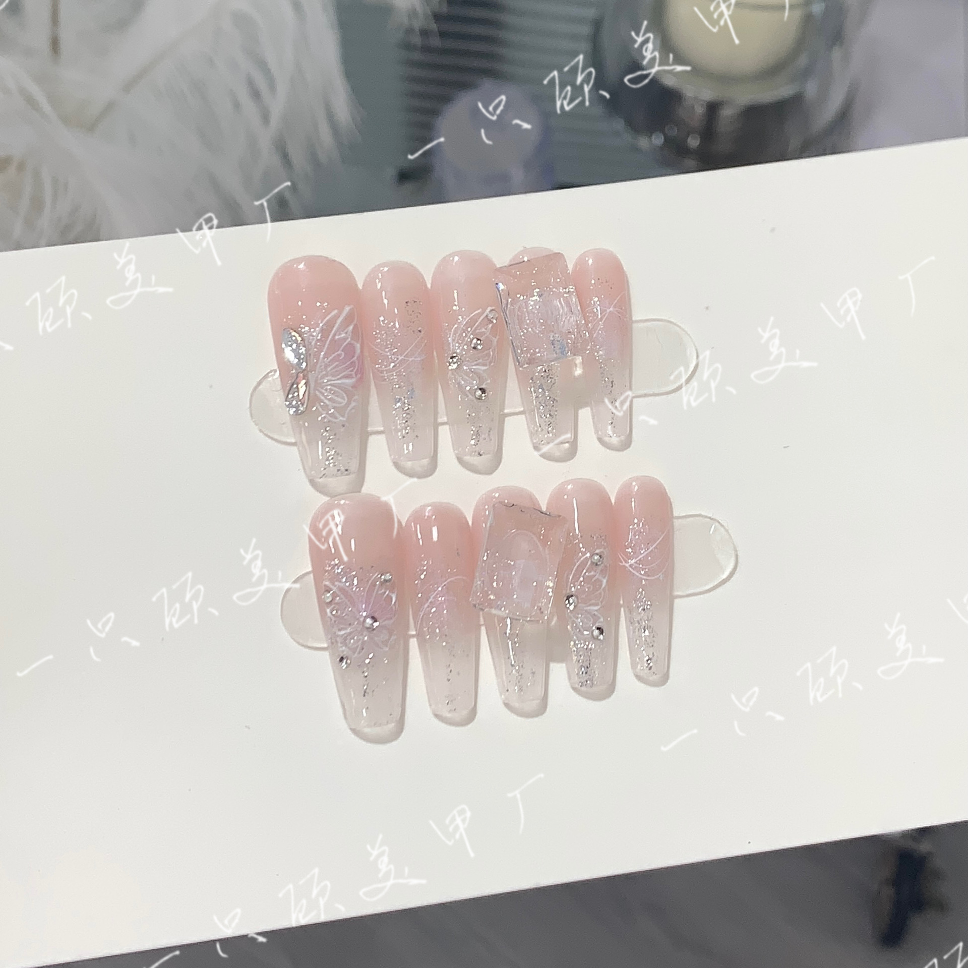 一只顾美甲厂【Y】【原创实拍】手工渐变纯欲裸粉透底钻冰透粉水