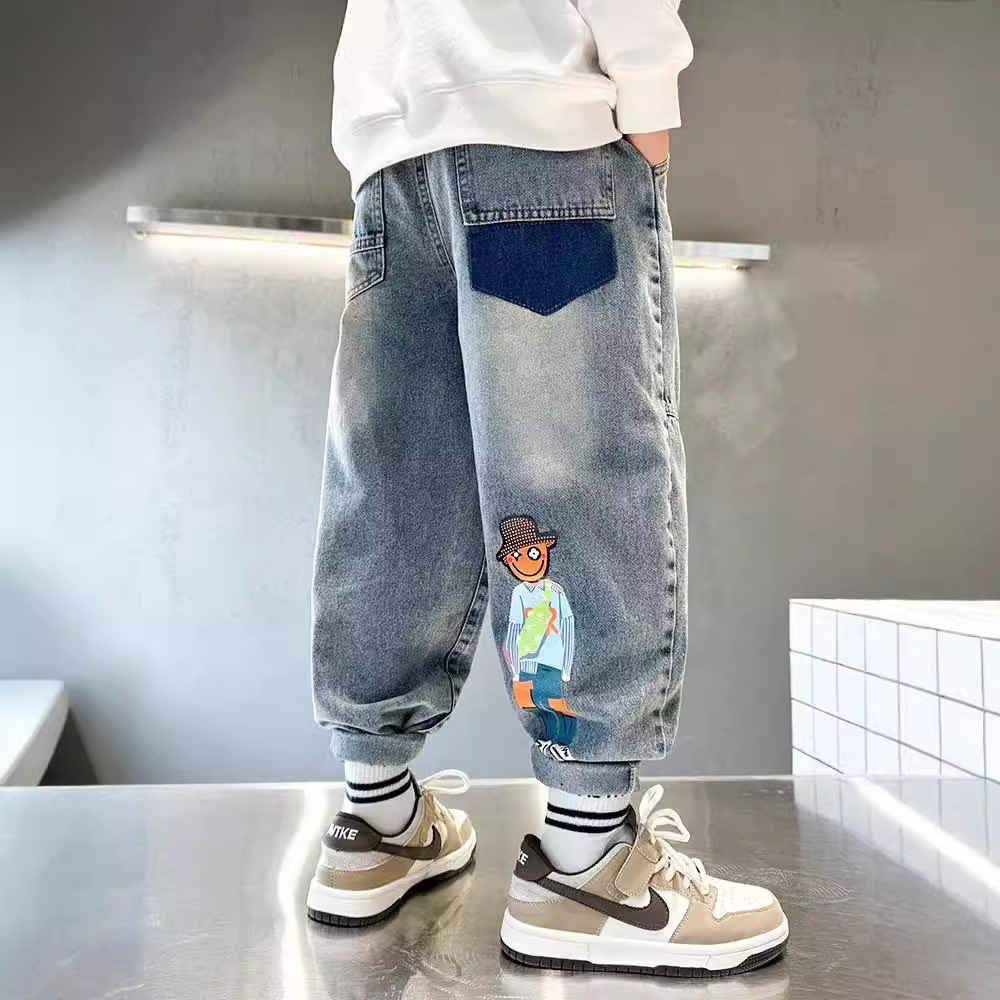 男童牛仔裤潮牌春秋新款中大童宽松休闲男孩长裤春季宽松帅气