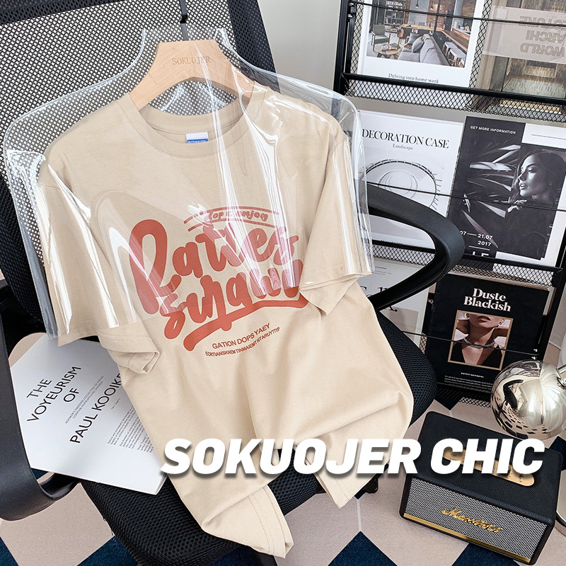 夏季新款潮牌印花短袖T恤女纯棉圆领体恤衫百搭打底衫SKA024