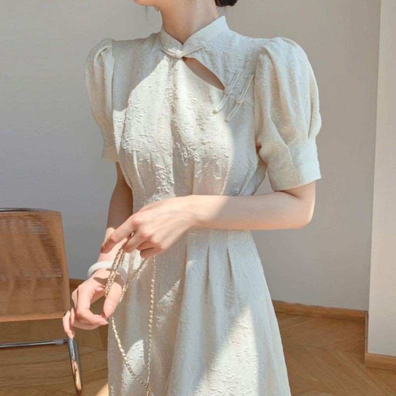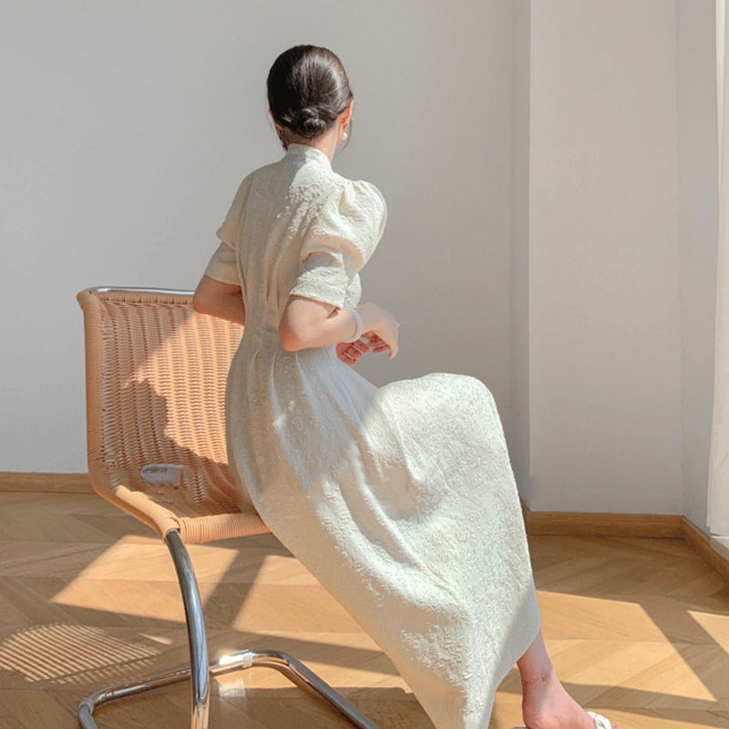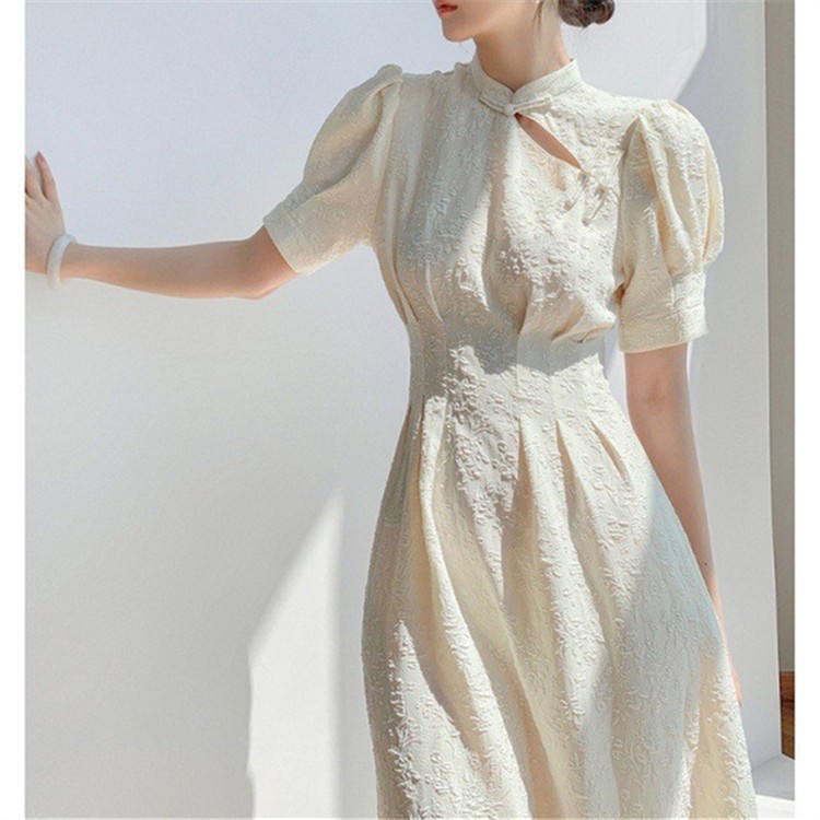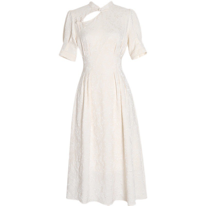 复古改良白色旗袍女装夏季新款法式连衣裙短袖气质高级感裙子