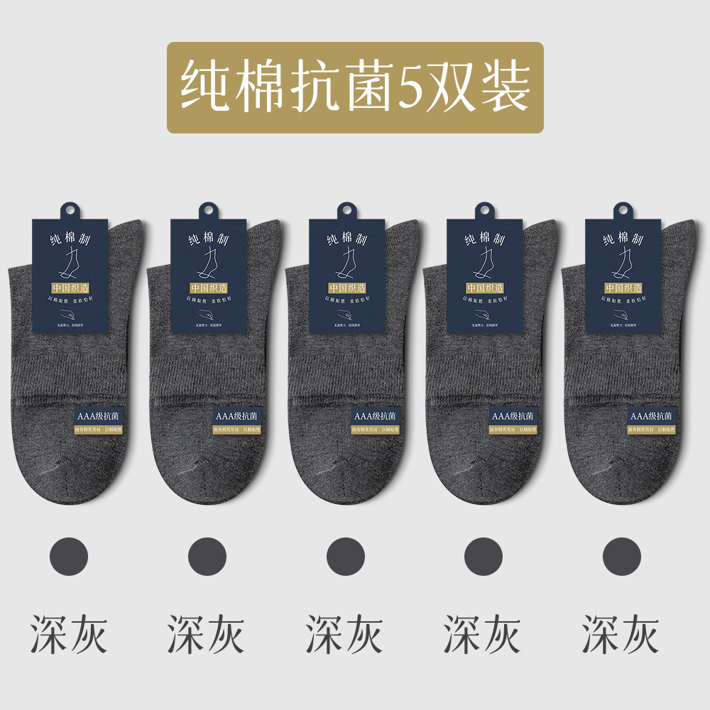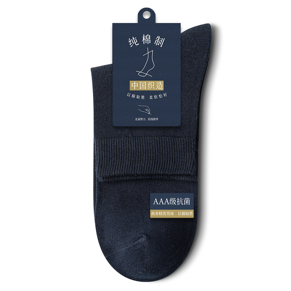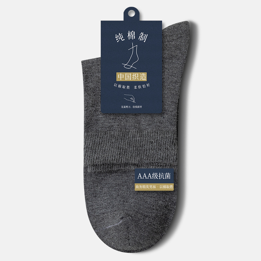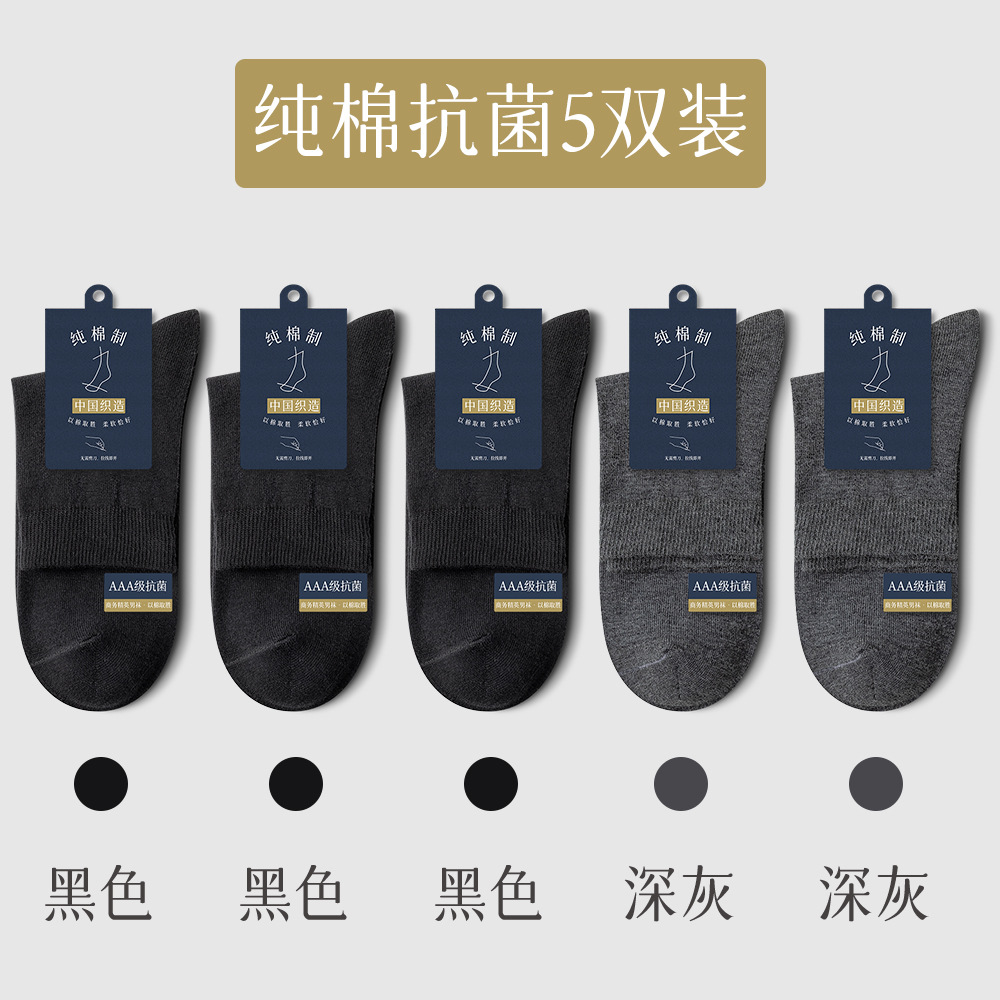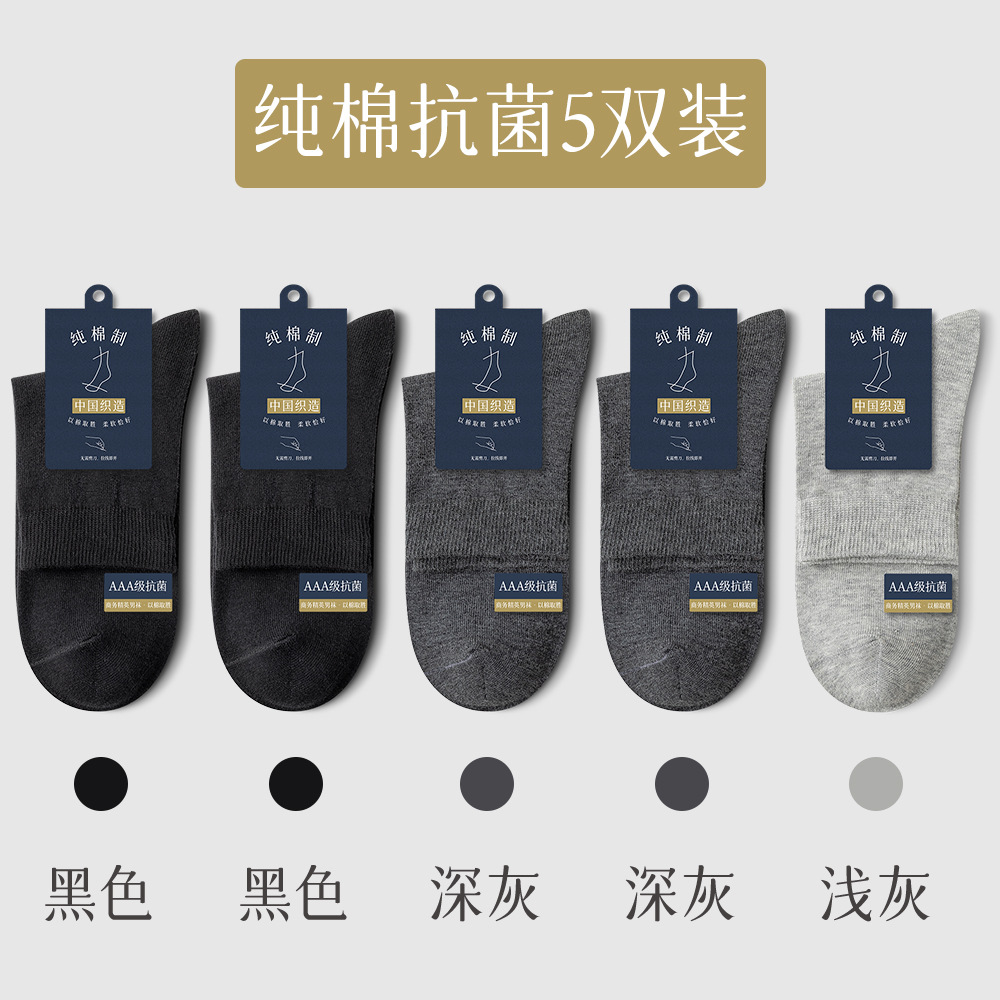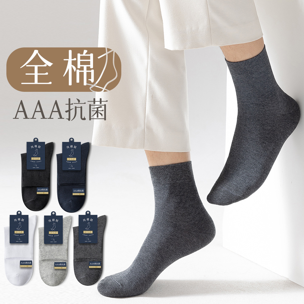 纯棉袜子男商务黑白抗菌中筒吸汗透气春夏四季薄款长筒袜全棉男士