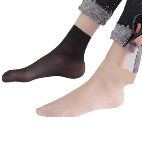 30双女夏季薄款水晶短袜防勾丝春夏中筒肉色钢丝女纯棉底袜子耐穿