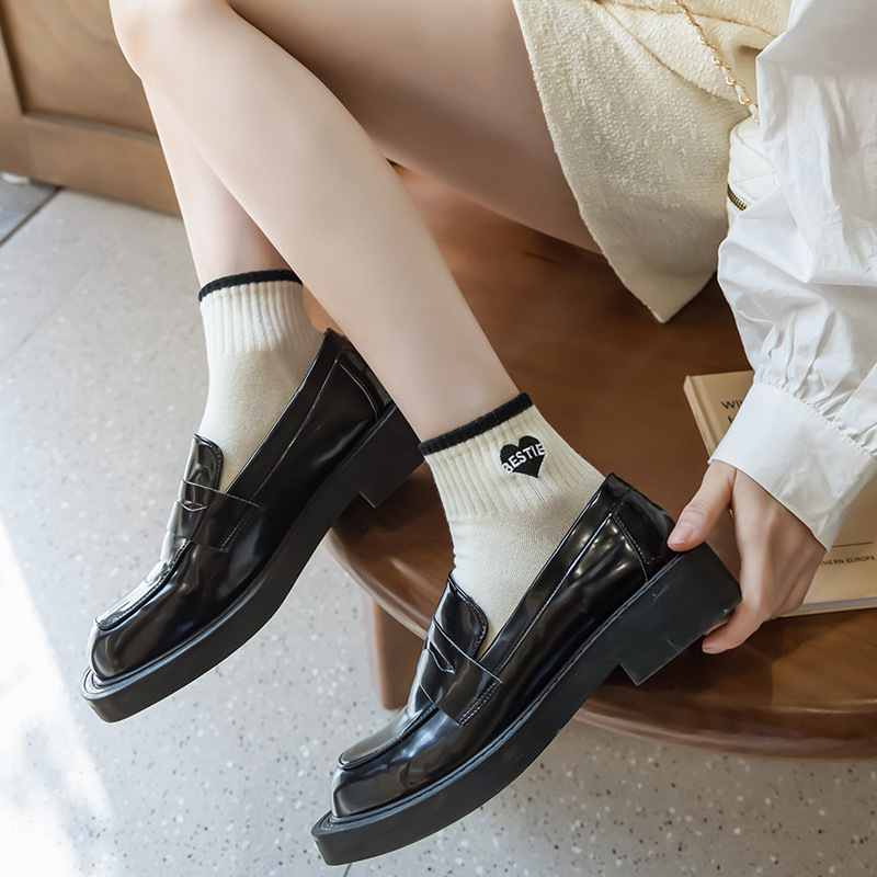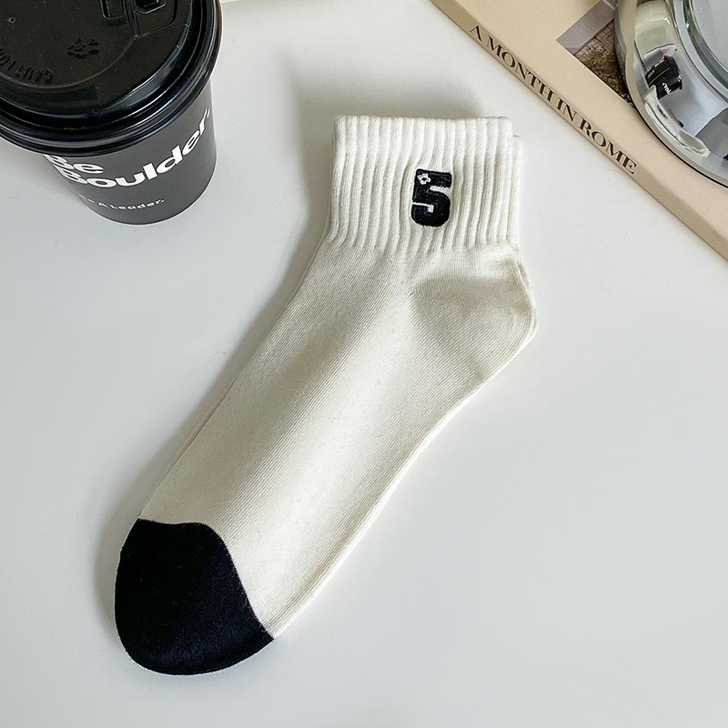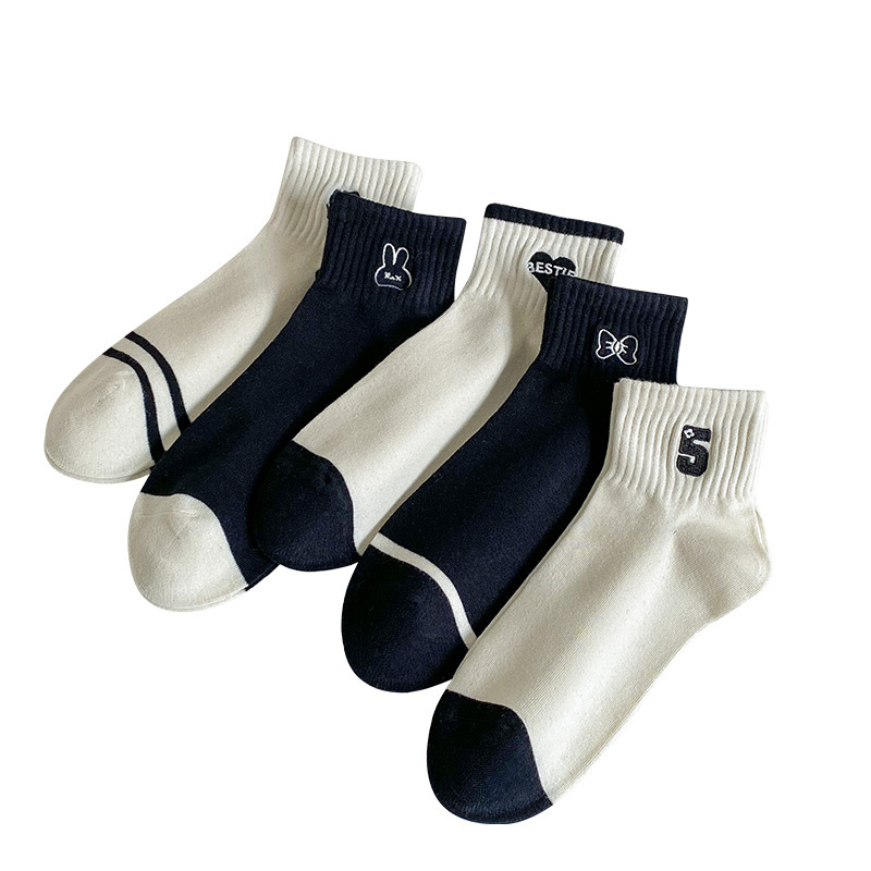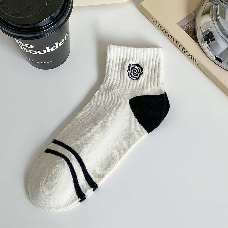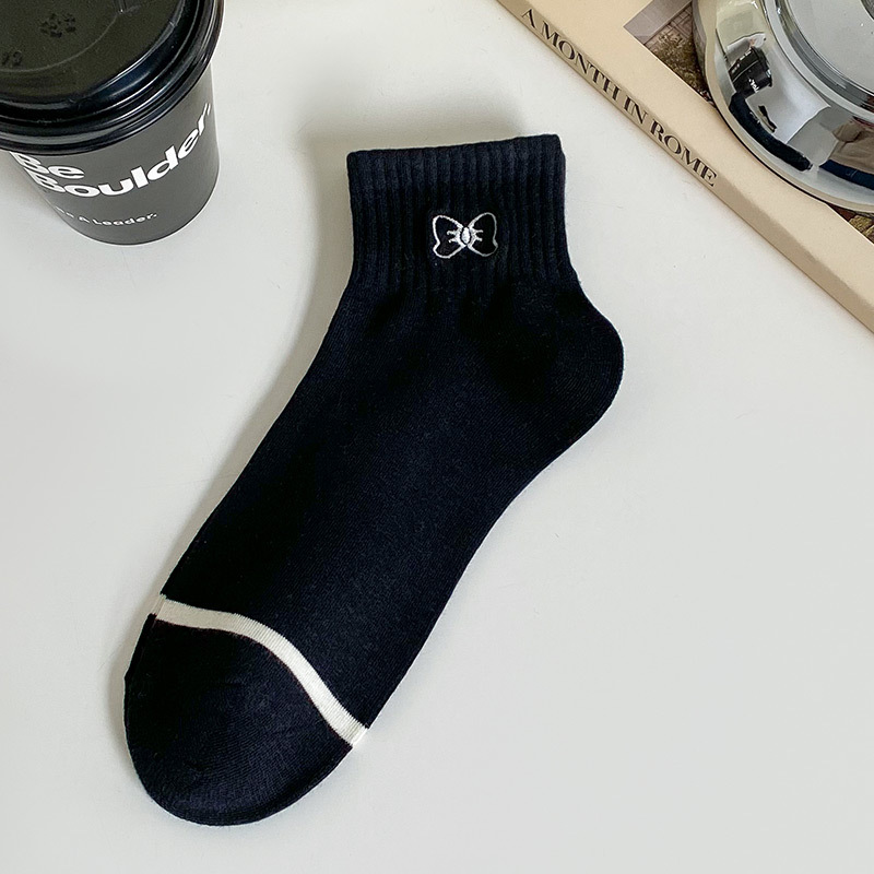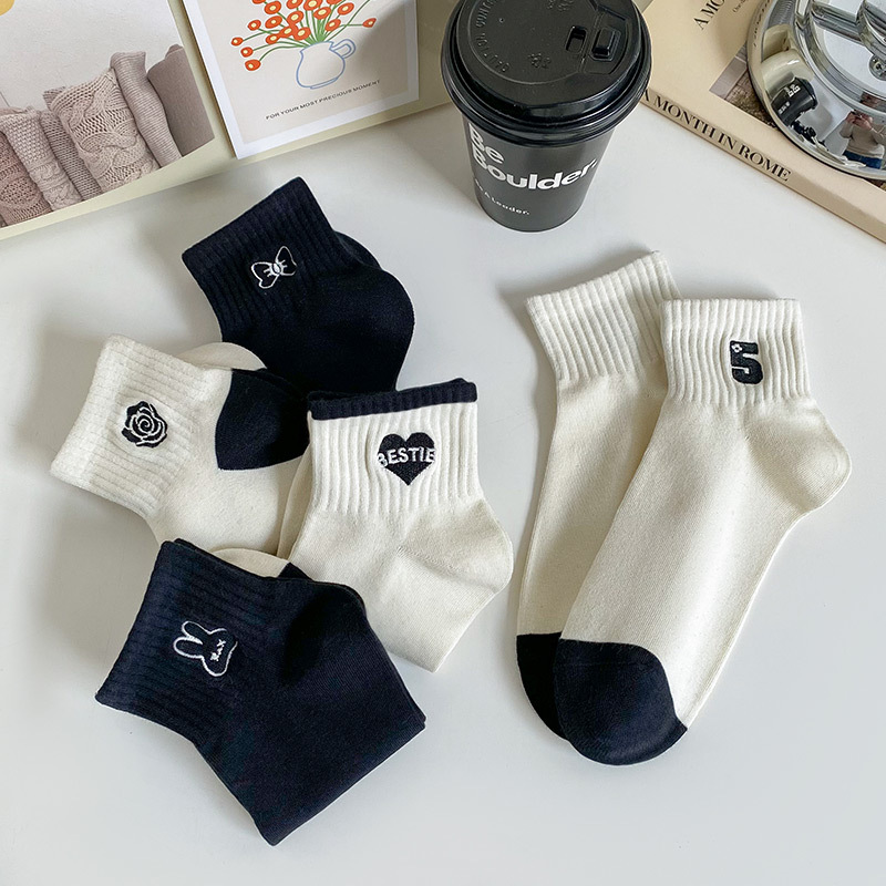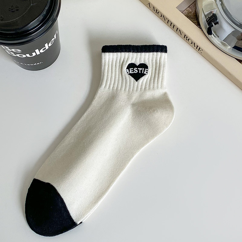 袜子女短袜春夏季薄款小香风刺绣爱心黑白色ins潮学院风日系纯棉