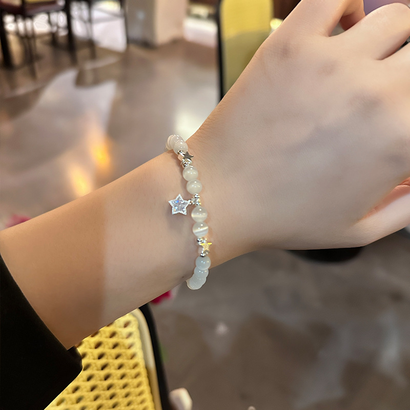 清透镶钻星星猫眼石串珠手链气质轻奢小众精致手饰高级感百搭手串