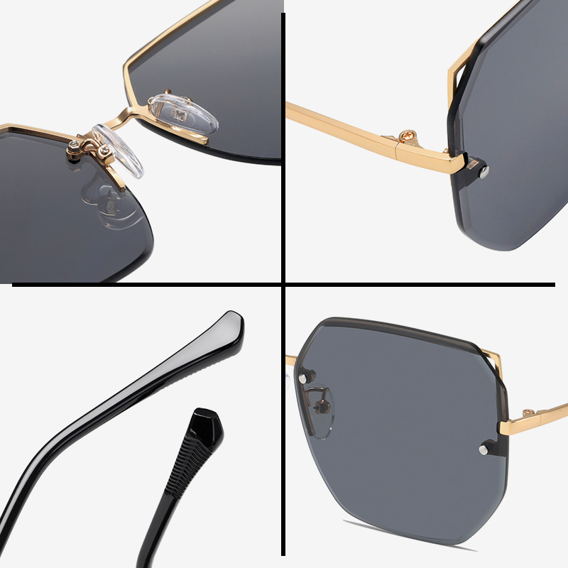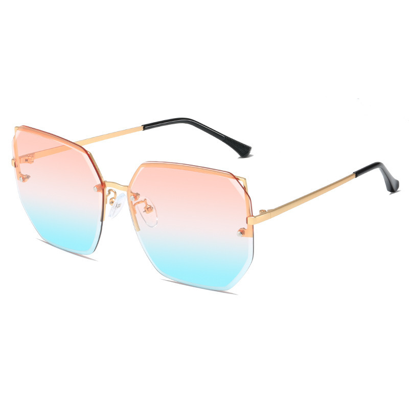 新款女士时尚无框墨镜 舒适显瘦渐变海滩户外防紫外线太阳镜