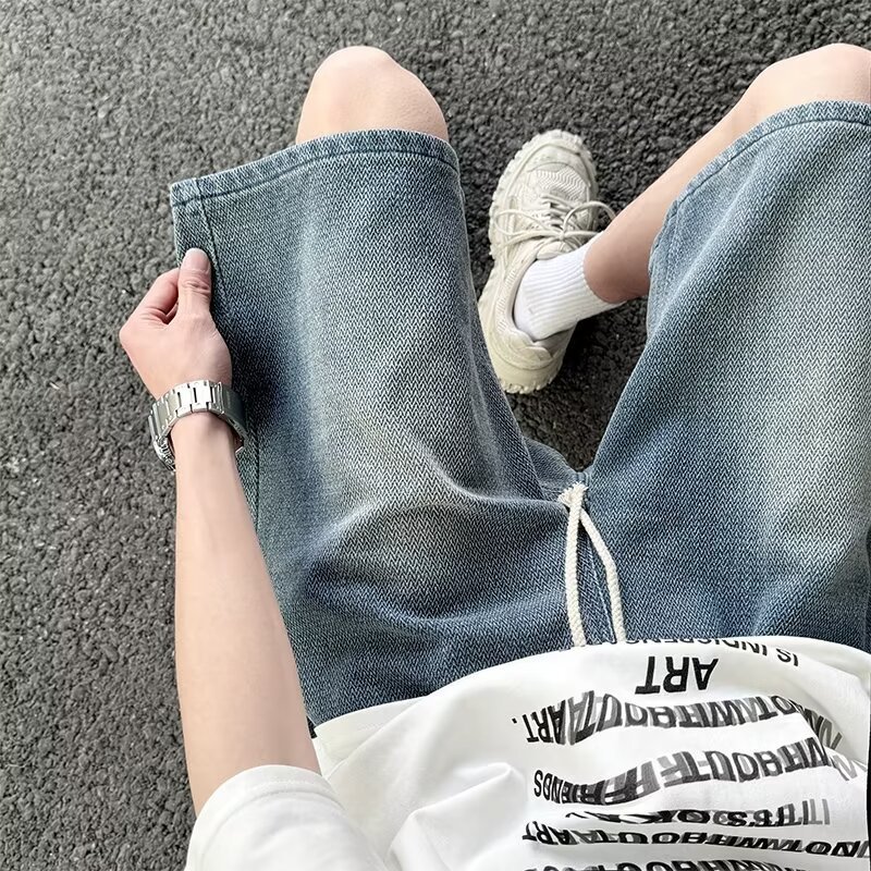 美式复古星空纹抽绳牛仔短裤男潮牌高街vibe松紧腰五分裤子夏薄款
