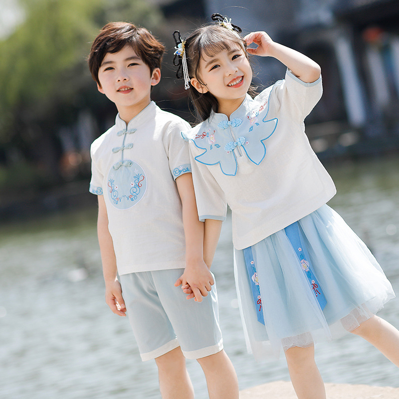 男女童幼儿园服夏装汉服六一演表演服中国风男女童新款唐装
