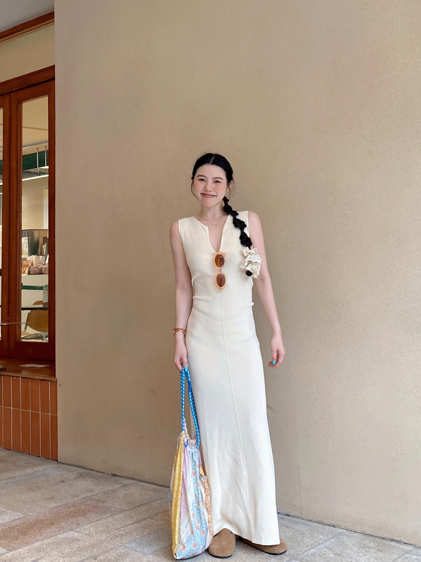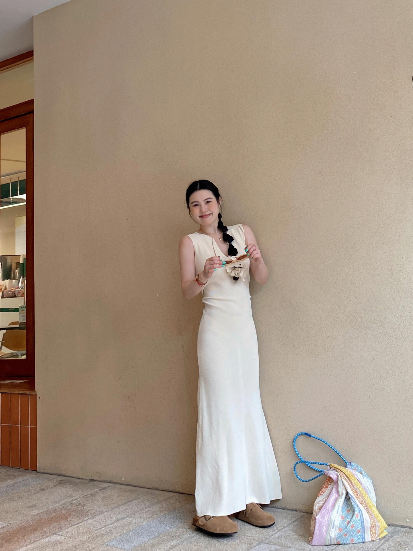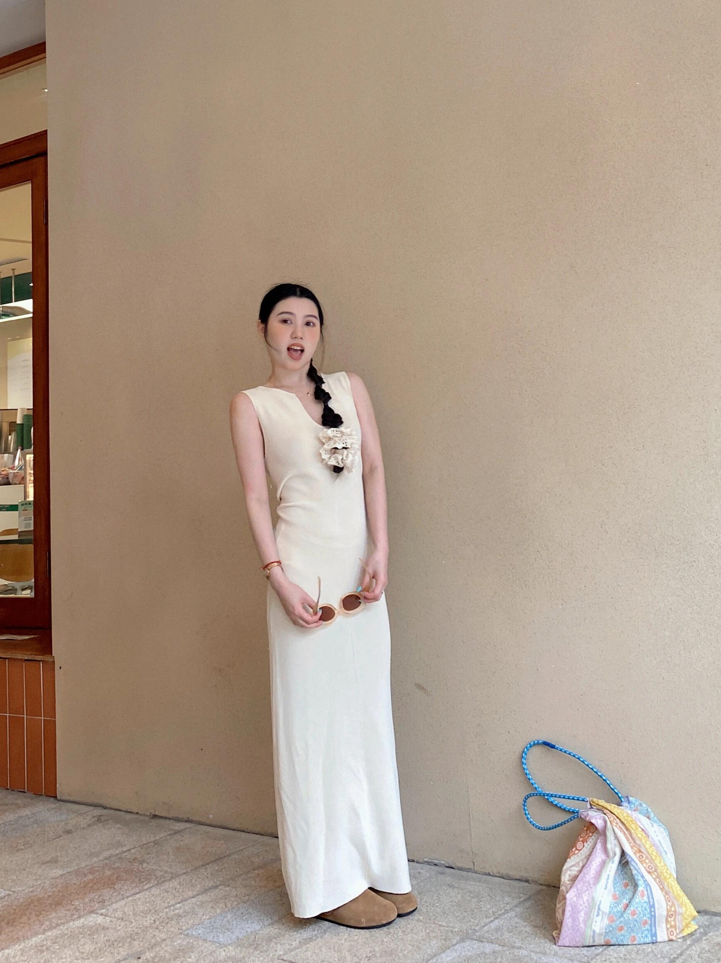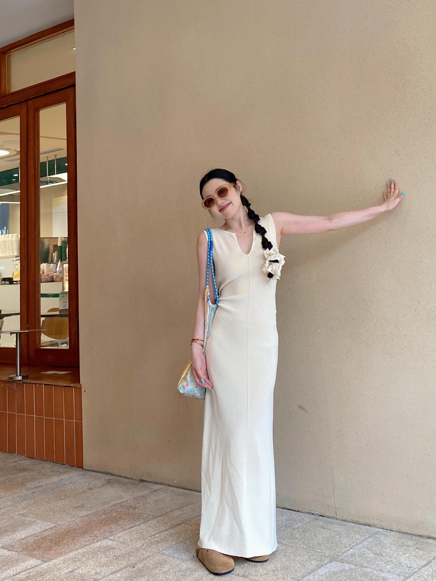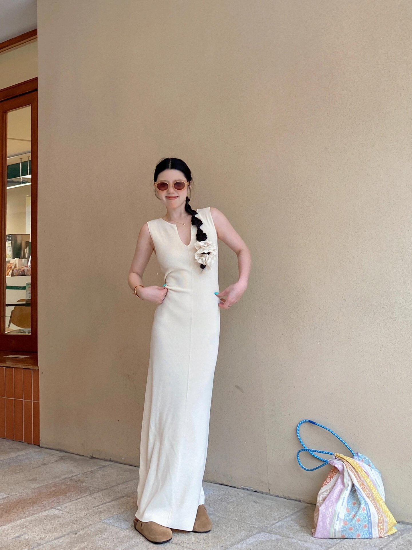 法式优雅气质极简白色连衣裙女春夏高级感无袖打底长款针织包臀裙