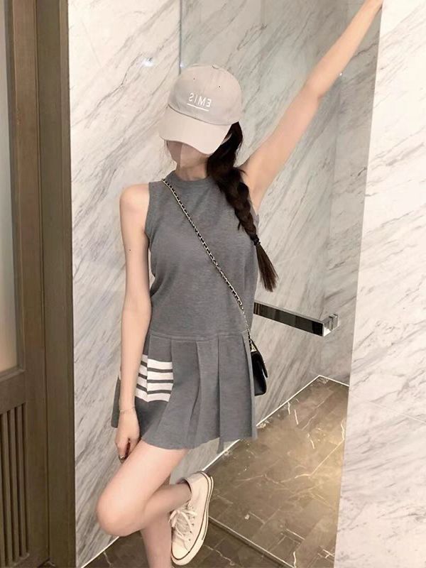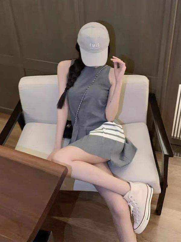 无袖百褶学院风连衣裙新款女夏高级感小个子别致法式甜辣气质