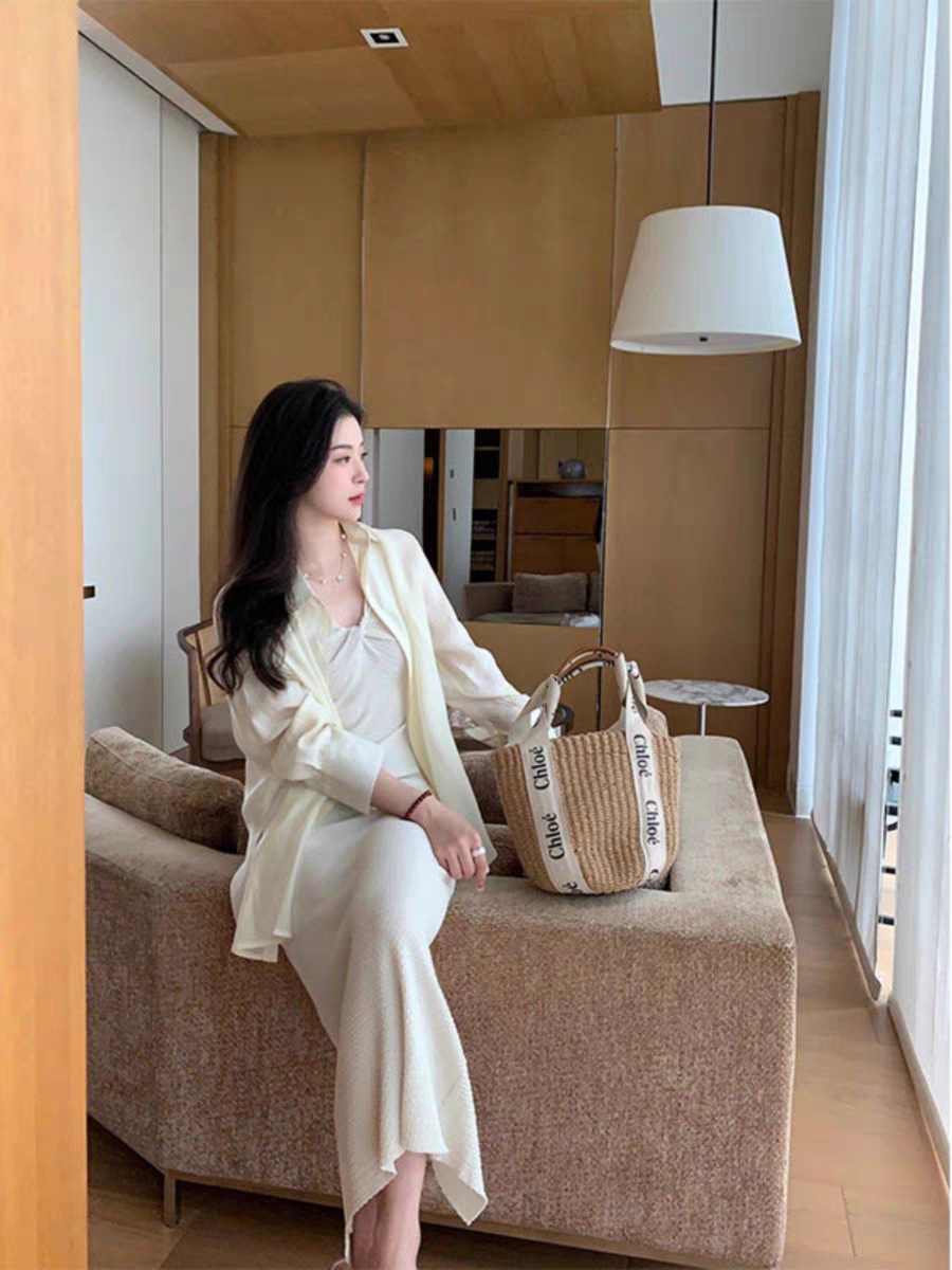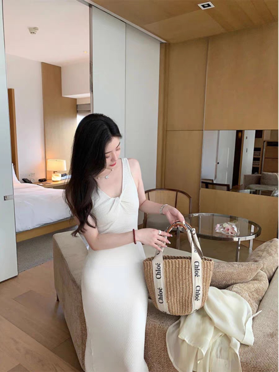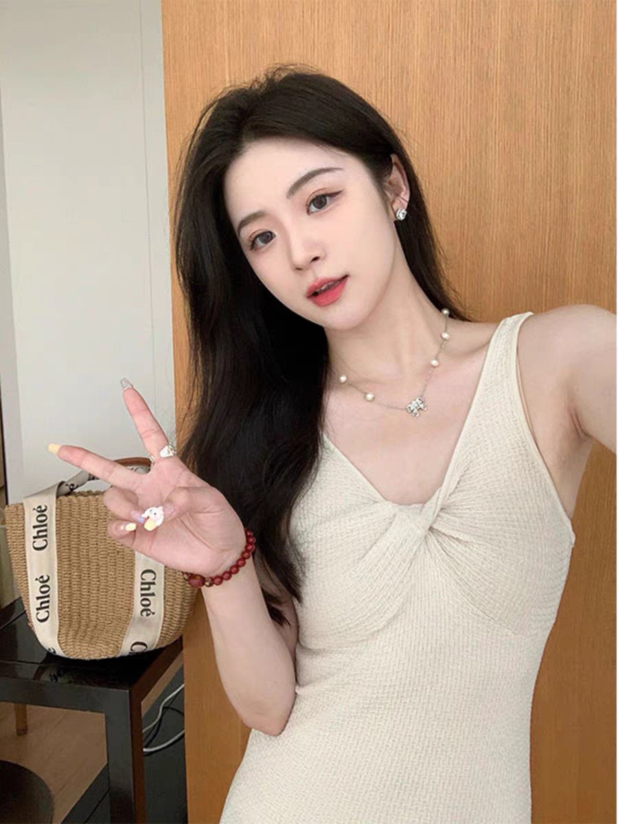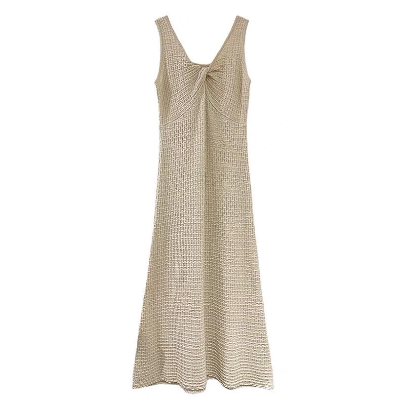 夏季新款肌理感针织吊带裙设计感法式包臀裙女收腰长裙v领连衣裙