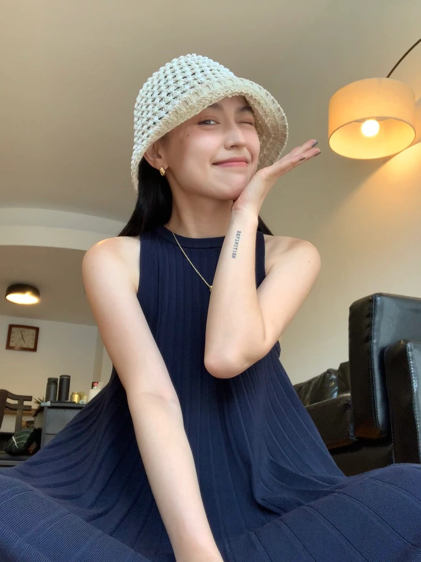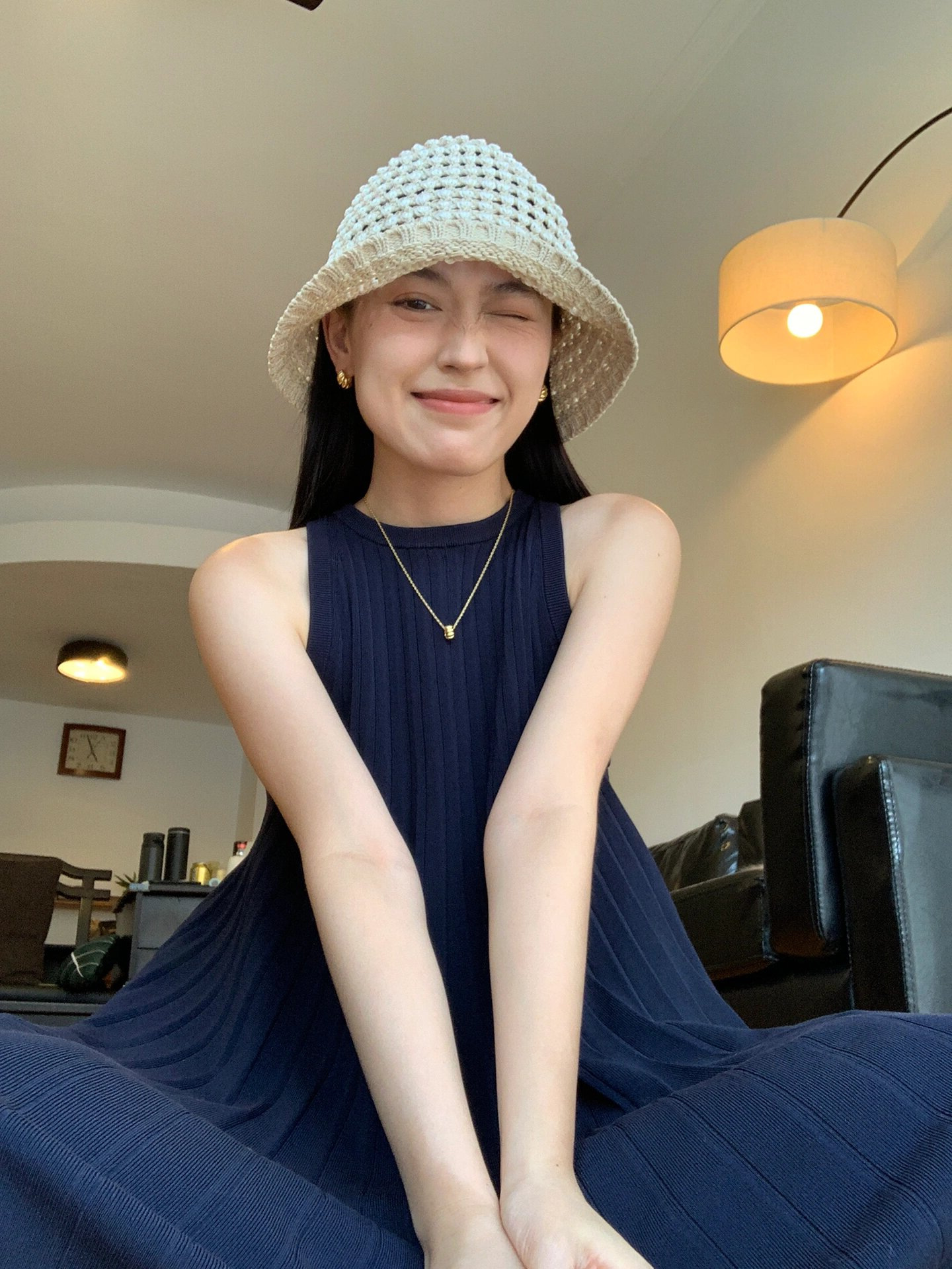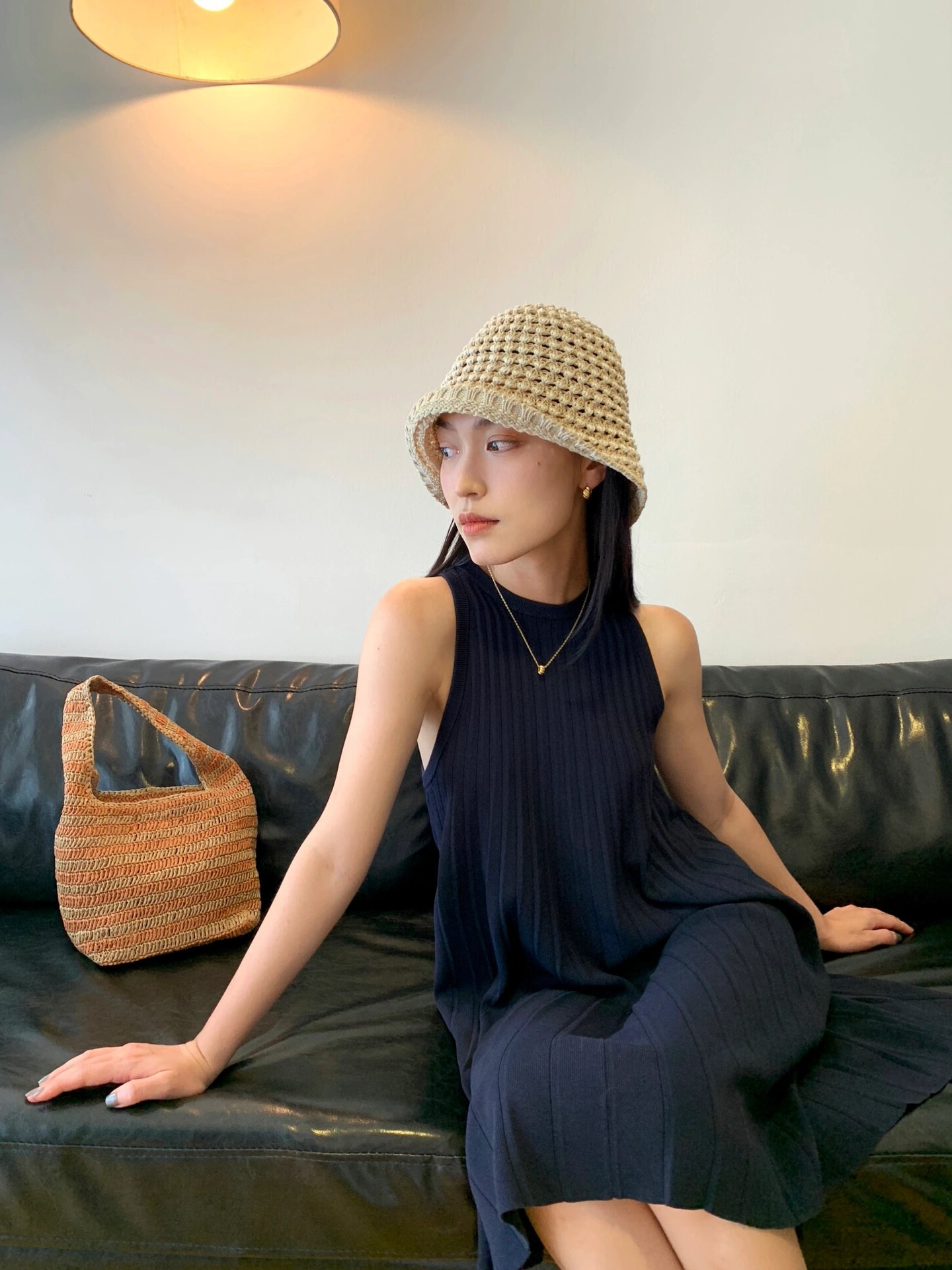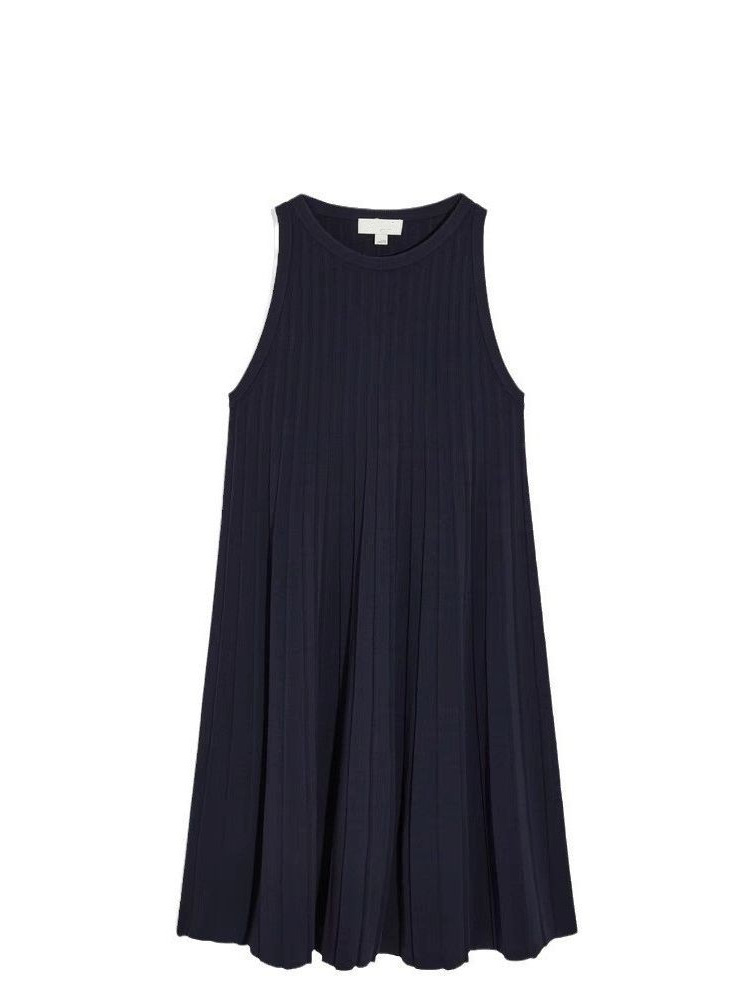 极简风夏季休闲A字圆领褶裥无袖针织背心连衣裙百褶连衣裙女