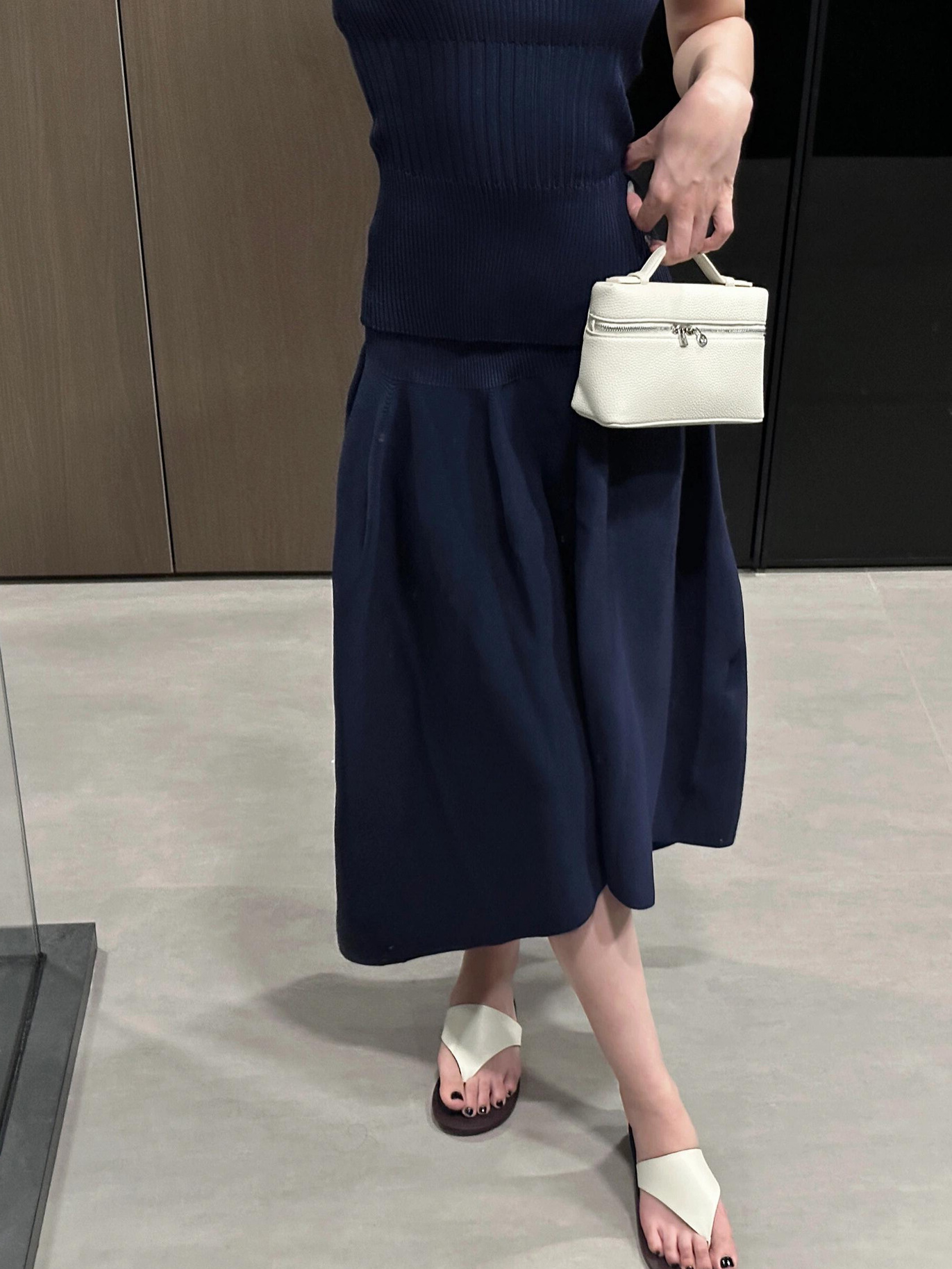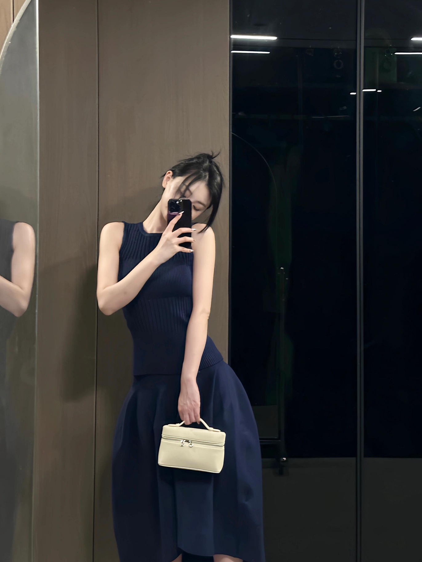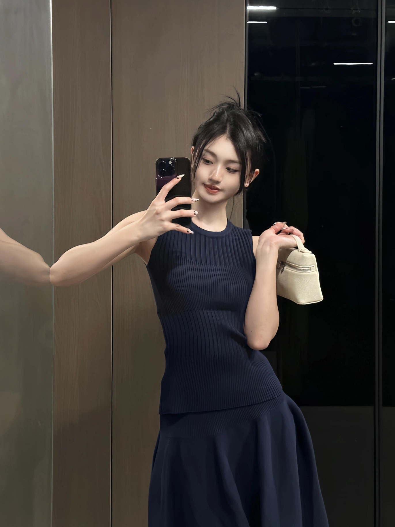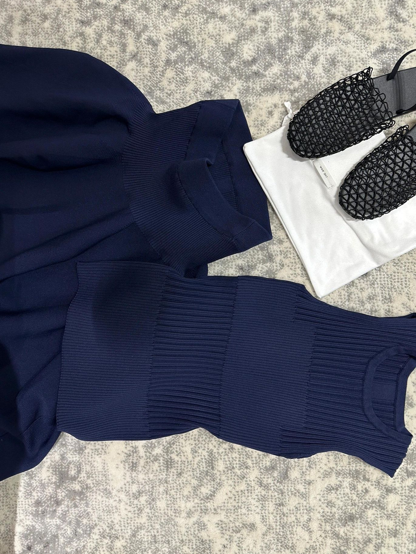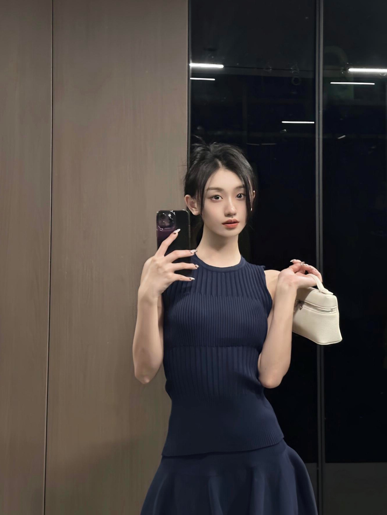 优雅老钱风小众设计感蓝色针织无袖背心上衣高腰花瓣裙两件套装裙