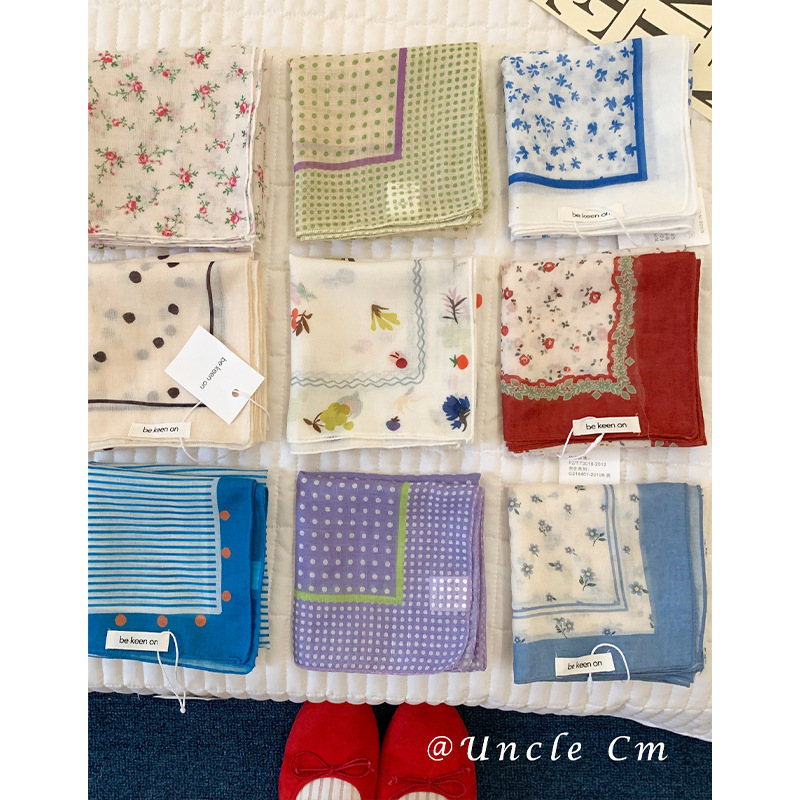 法式田园风花朵波点丝巾女甜美百搭系脖配饰高级感薄款小方巾头巾
