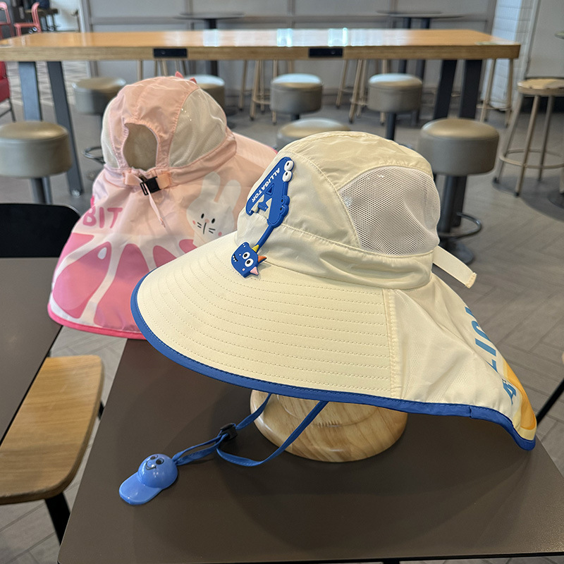 大帽檐儿童防晒帽夏季宝宝帽子遮阳帽男童女童渔夫帽太阳帽披肩帽